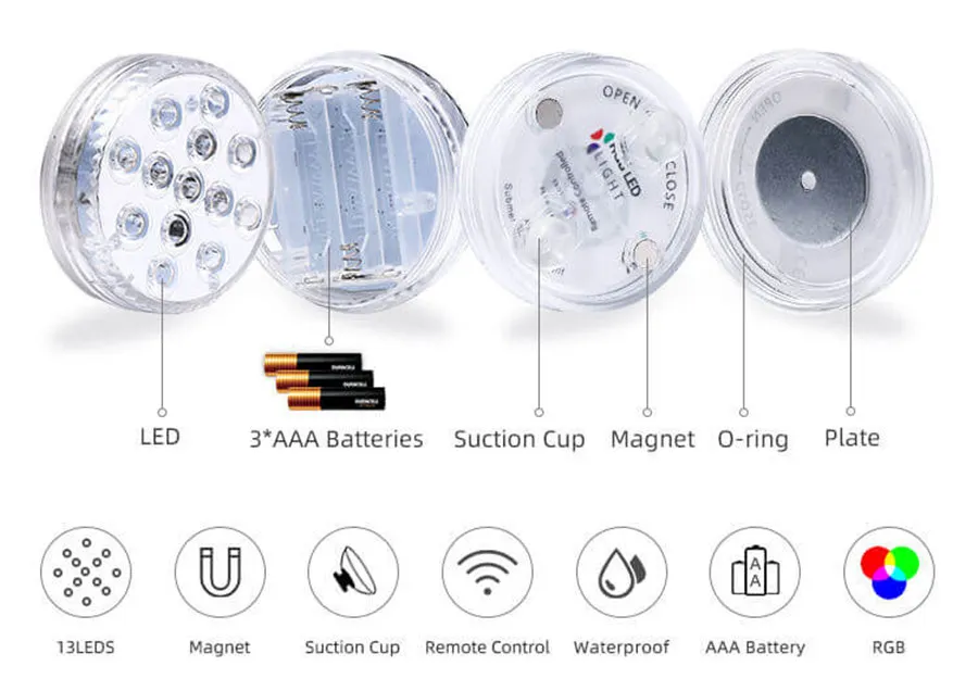 F1414 NEW Upgraded IP68 Magnet RGB Submersible Light 13LEDs Underwater Night Lamp Outdoor Vase Bowl Pond Swimming Pool Decor Lamp