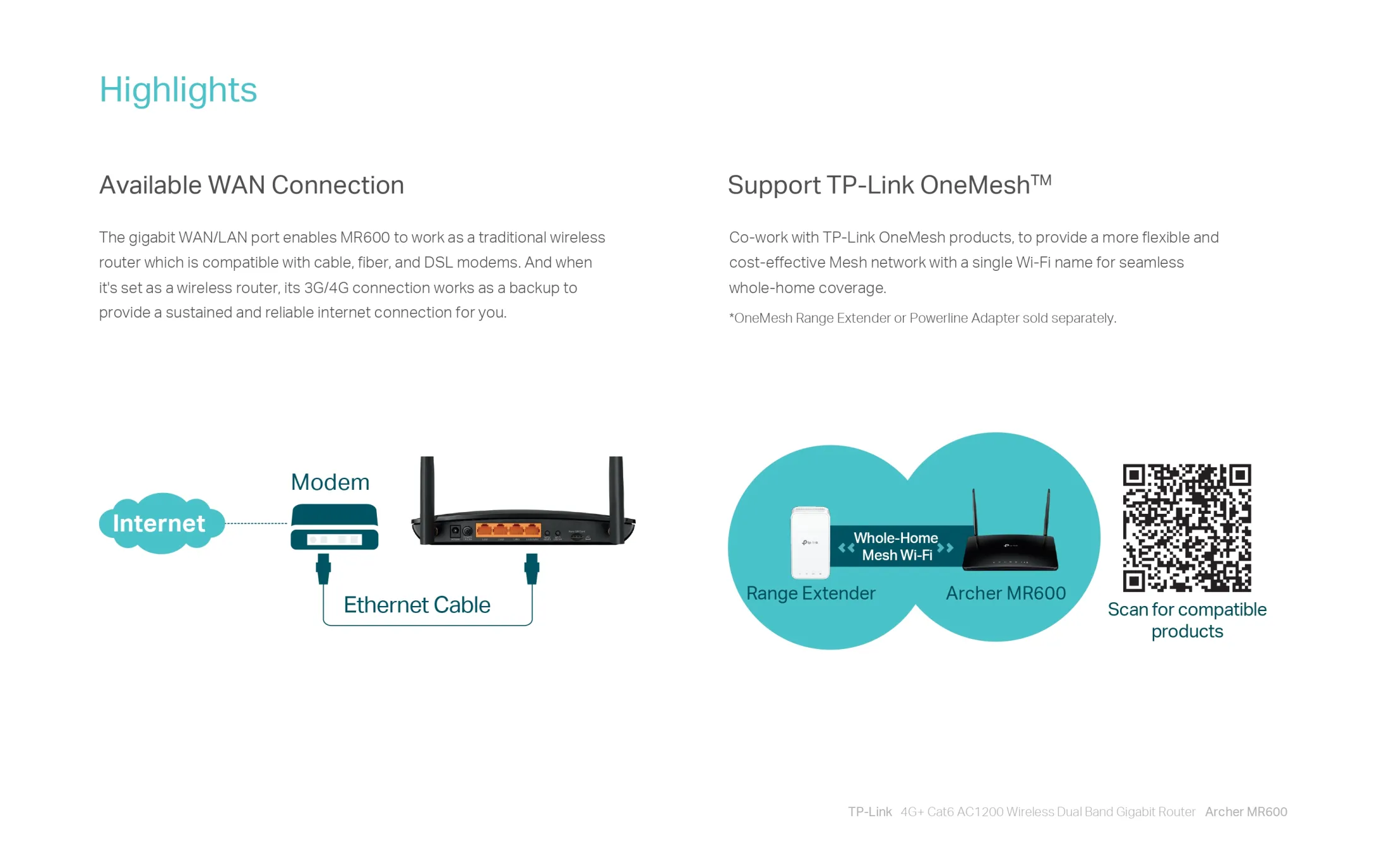 • โหมดเราเตอร์ Wi-Fi – ยืดหยุ่นการใช้งานด้วยการเสียบสายอีเธอร์เน็ตเข้ากับพอร์ต LAN / WAN เป็นตัวเลือกสำรองหากคุณไม่สามารถเชื่อมต่อ 4G ได้