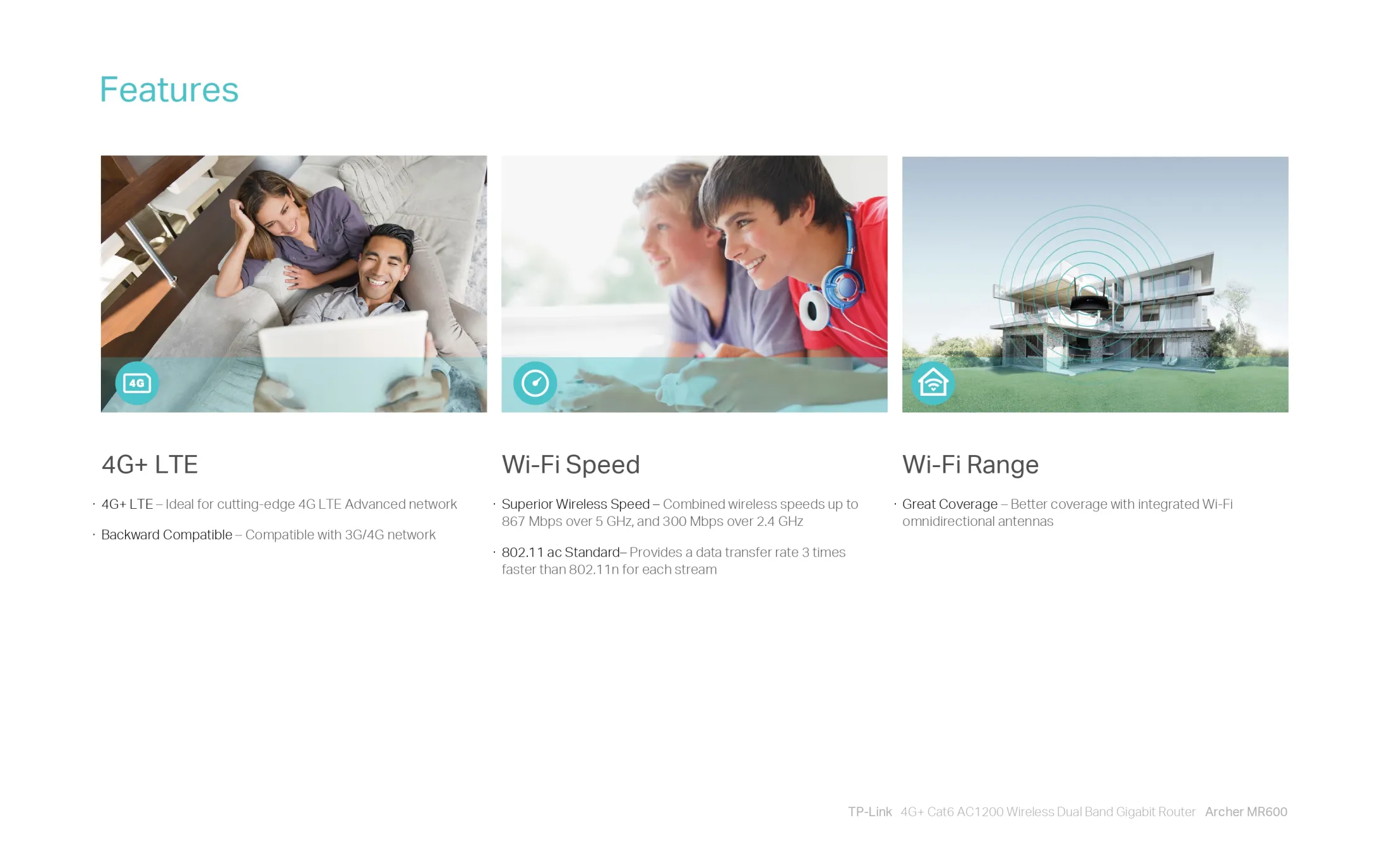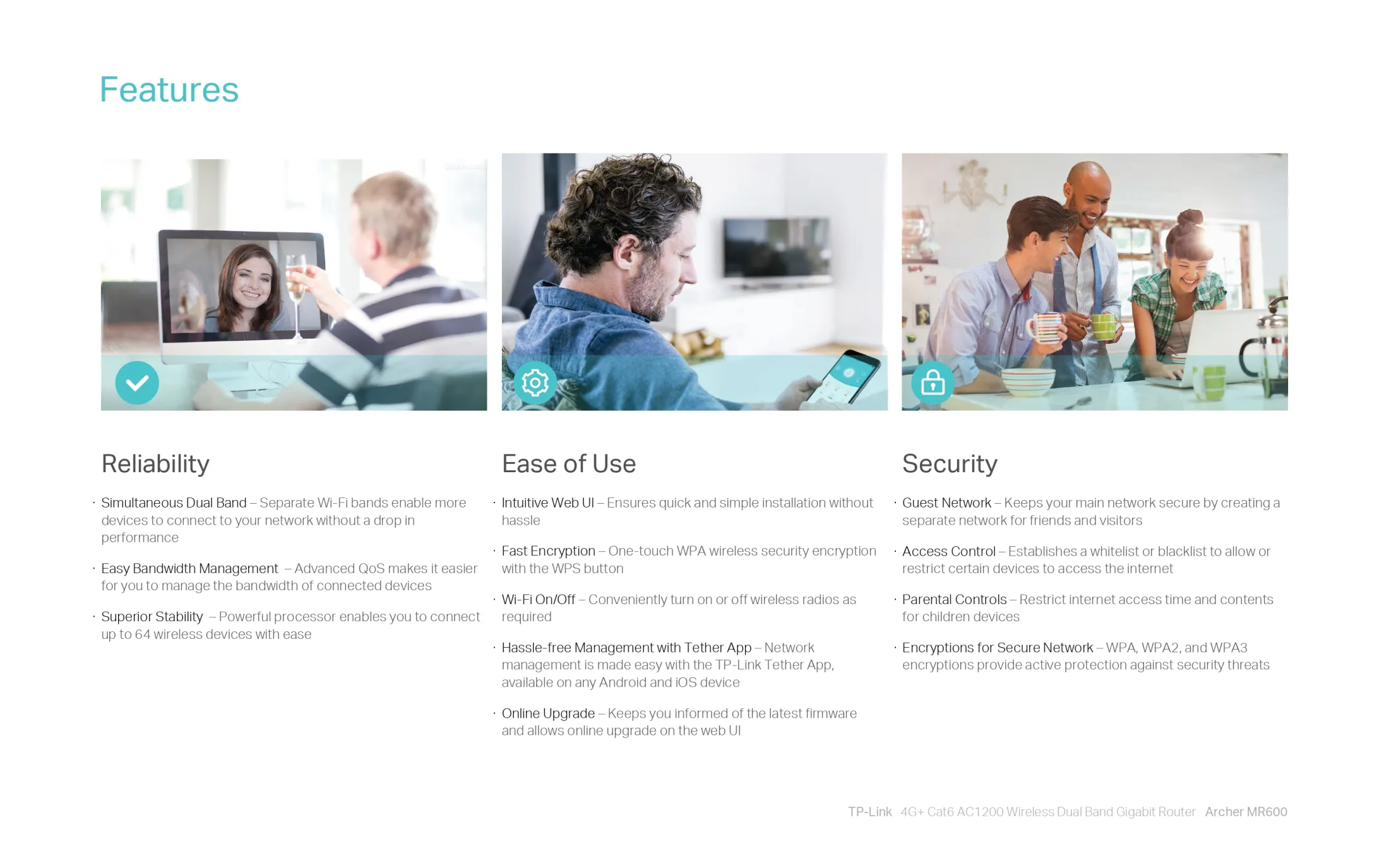 •Full Gigabit Ports – ให้การเชื่อมต่อแบบมีสายสำหรับอุปกรณ์ที่ใช้แบนด์วิธสูง เช่น เกมคอนโซล