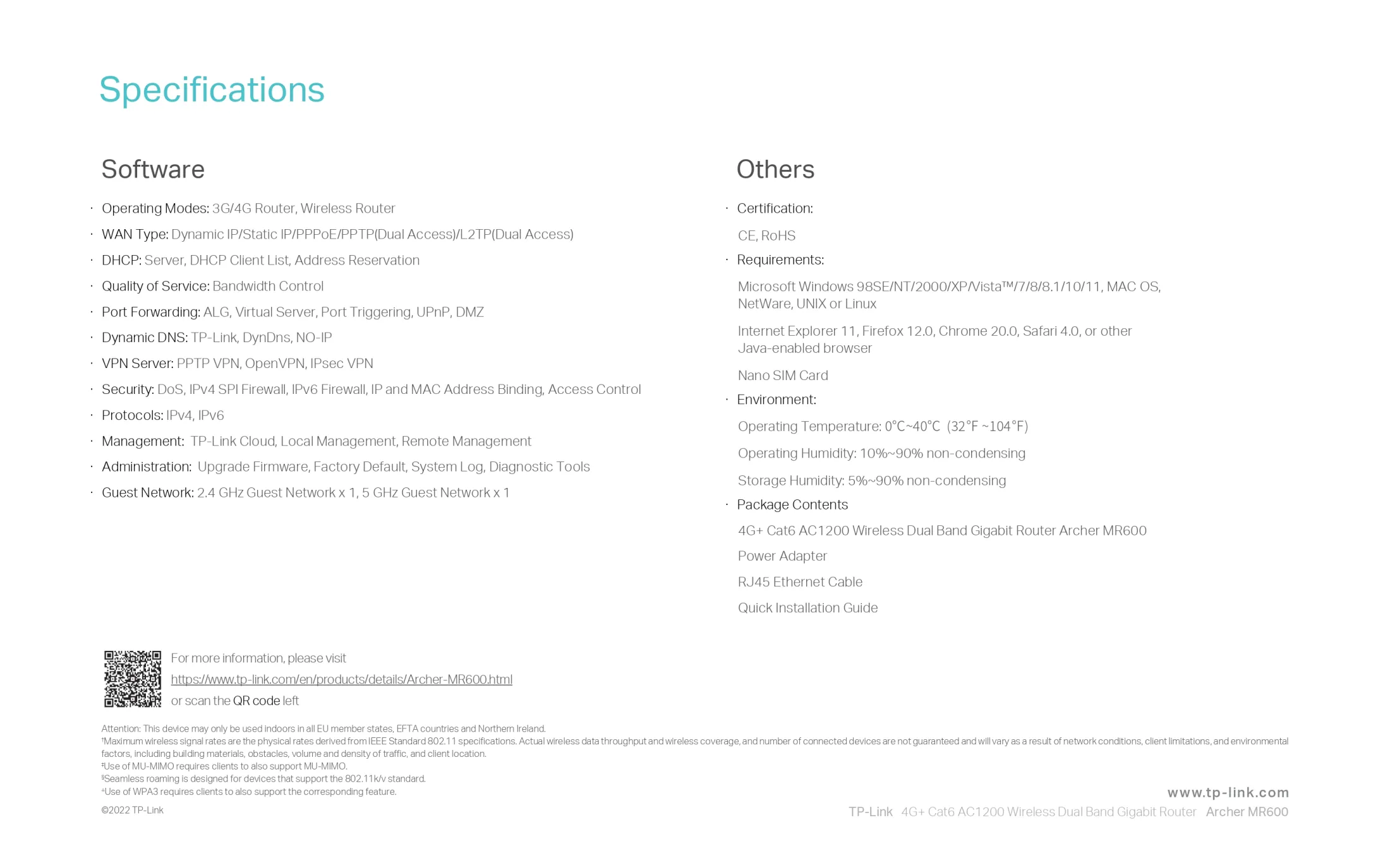 Archer MR600 4G+ Cat6 AC1200 Wireless Dual Band Gigabit Router