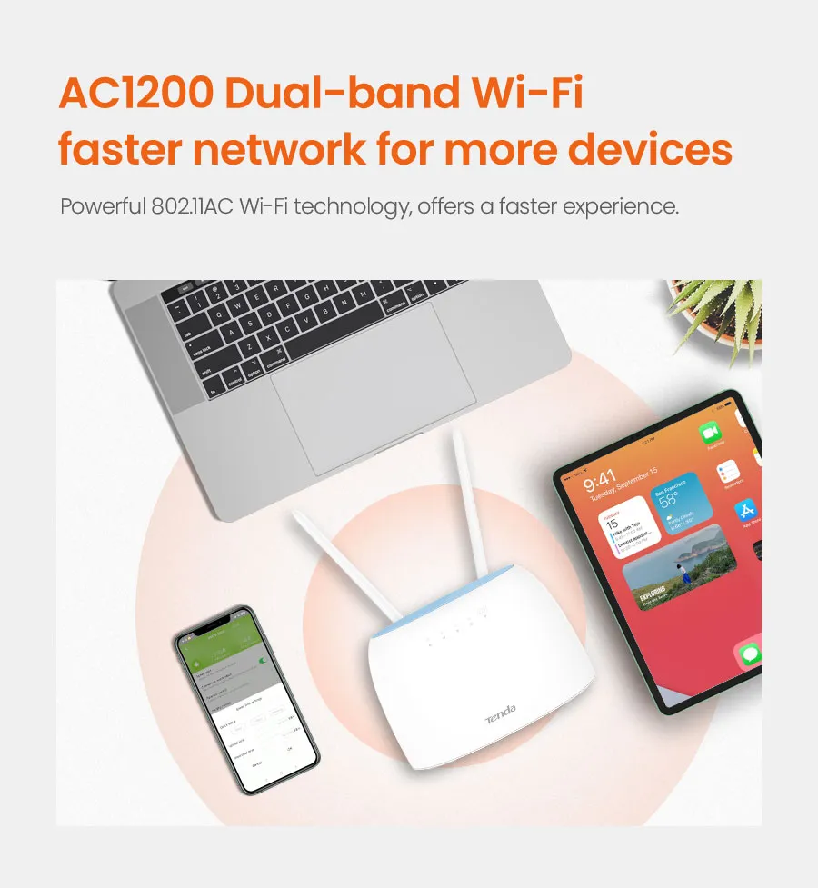 F1433 Tenda 4G09 เร้าเตอร์ใส่ซิม AC1200 4G CAT6 Router Wifi รองรับ 4G ทุกเครือข่าย รองรับ 2CA (Wireless Dual Band)