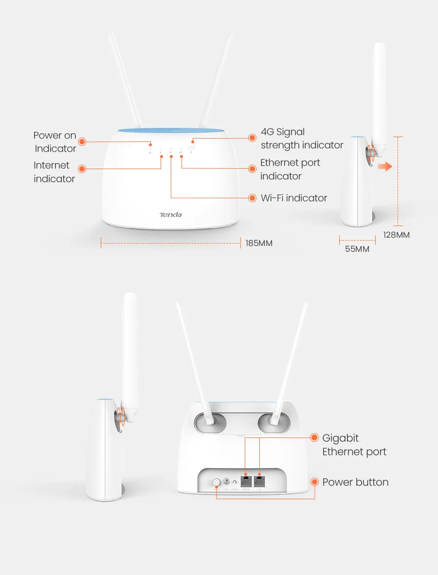 4G09 แบ่งปันเครือข่ายขั้นสูง 4G+ LTE ล่าสุด เพียงเสียบซิมการ์ดของคุณและแบ่งปันการเชื่อมต่ออินเทอร์เน็ต 4G LTE หรือ 3G ของคุณผ่านเครือข่ายไร้สายที่ปลอดภัยหรือพอร์ตอีเธอร์เน็ตสองพอร์ตใดก็ได้