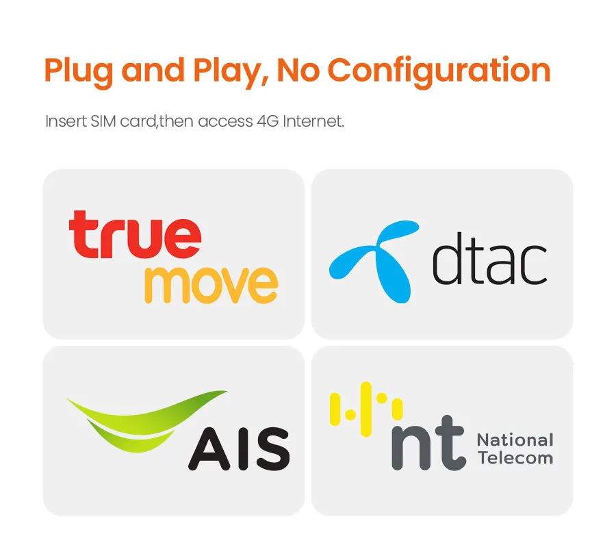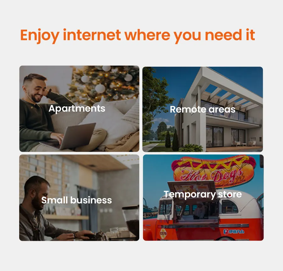 ด้วยการครอบคลุมสัญญาณ LTE Advanced เพื่อประสิทธิภาพที่ดีที่สุดและช่วยให้คุณรับการเข้าถึงอินเทอร์เน็ตโดยไม่ต้องใช้สายเคเบิลและไฟเบอร์ จึงเป็นตัวเลือกที่เหมาะสำหรับพื้นที่ห่างไกล เช่น ชนบทและชานเมือง ร้านค้าชั่วคราว และบ้านพักตากอากาศ ทำให้อุปกรณ์สามารถเข้าถึงอินเทอร์เน็ตได้ทุกที่ และเมื่อใดก็ตามที่ผู้ใช้อยู่