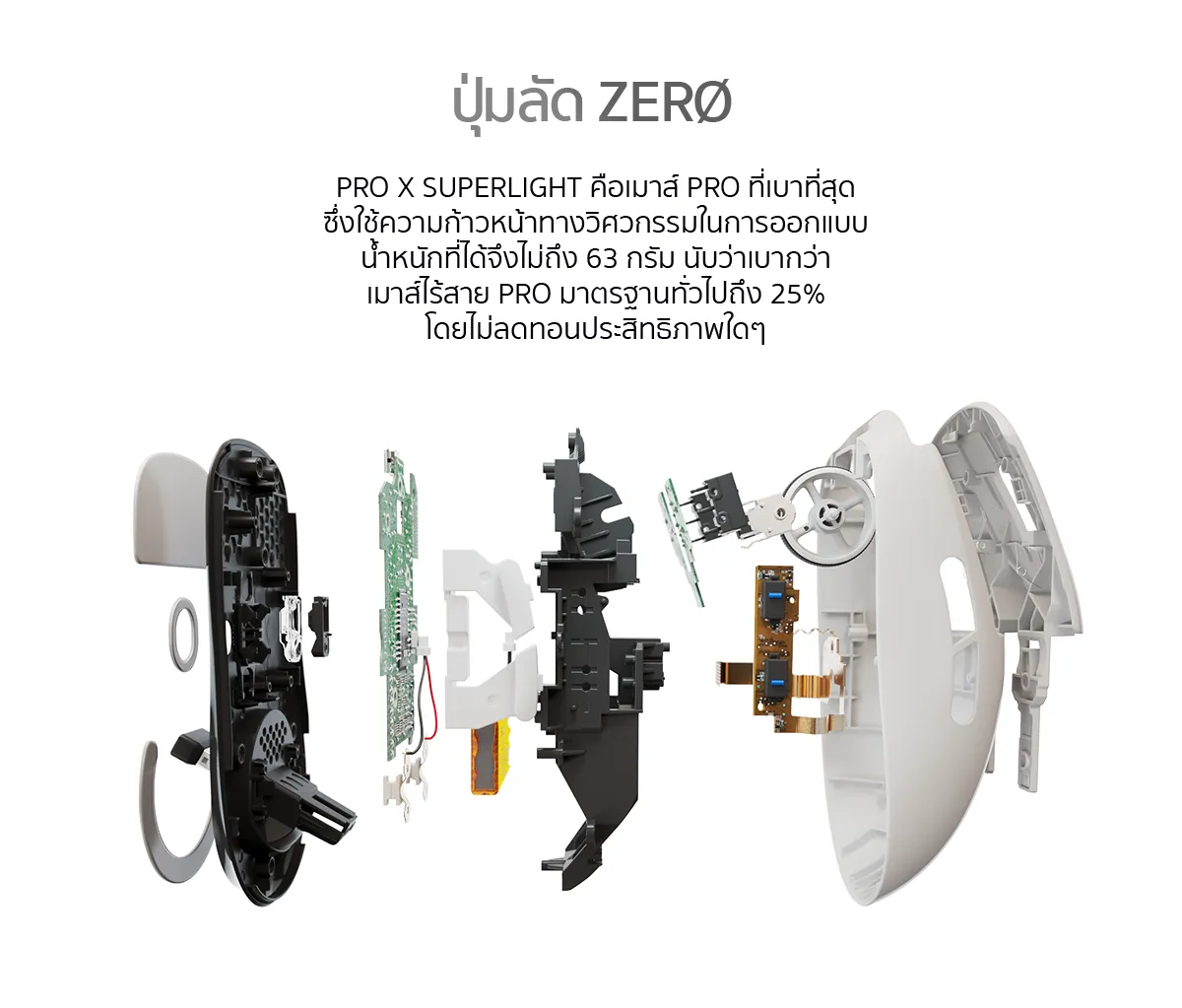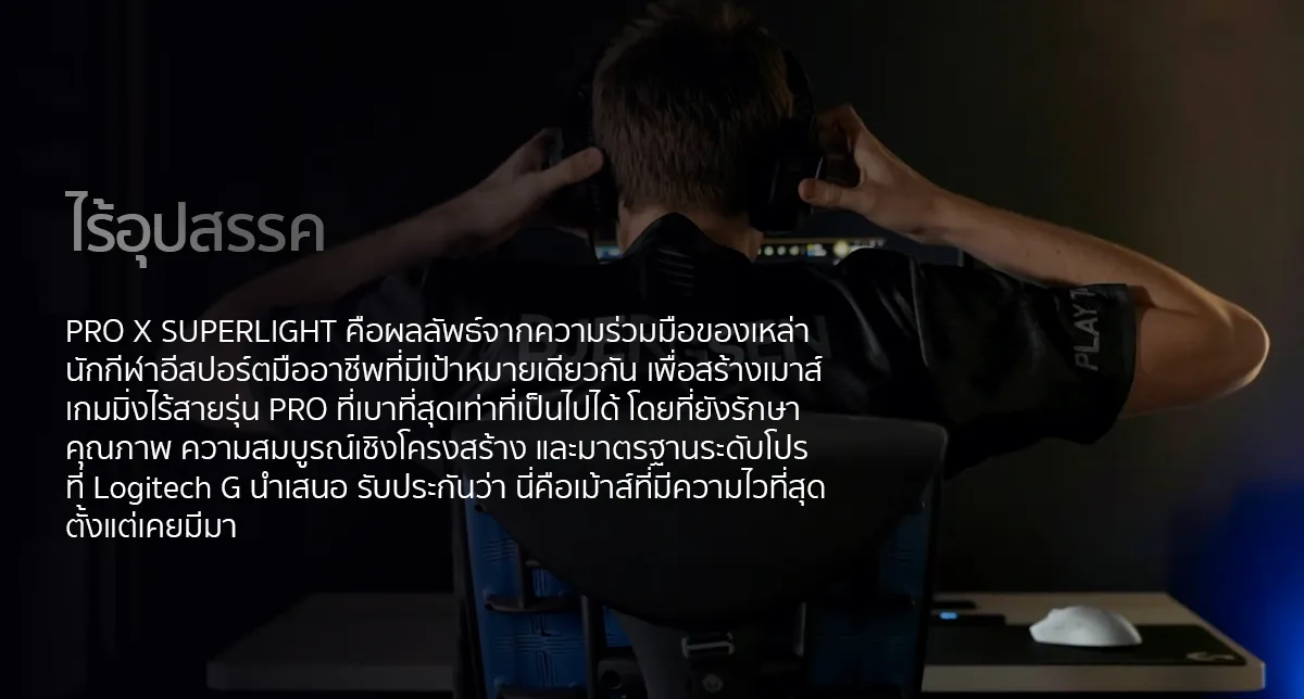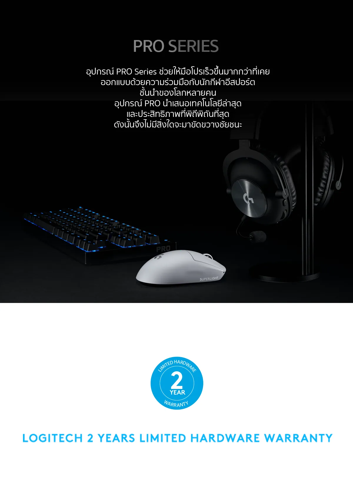 Logitech G PRO X Superlight Wireless Gaming Mouse 25,600 DPI (เมาส์เกมมิ่งไร้สาย หนักเพียง 63 กรัม พร้อมปุ่มมาโคร 5 ปุ่ม)
