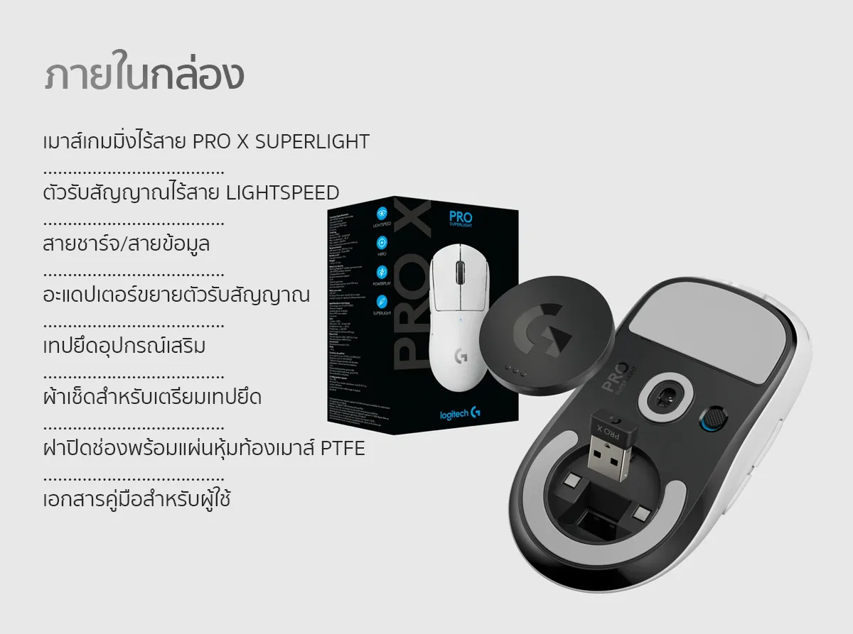 F1435 Logitech G PRO X Superlight Wireless Gaming Mouse 25,600 DPI (เมาส์เกมมิ่งไร้สาย หนักเพียง 63 กรัม พร้อมปุ่มมาโคร 5 ปุ่ม)