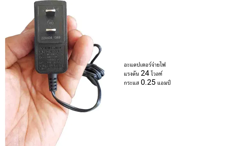 สายอะแดปเตอร์ได้ ทำให้ง่ายต่อการติดตั้ง เพราะไม่ต้องเดินสายไฟ ขึ้นไปบนเสา หรือ อีกแบบนึง คือจะไม่ใช้ตัวจ่ายไฟ แบบ PoE ก็ได้ คือการเสียบอะแดปเตอร์ 24 โวลท์ เข้าไปยังอุปกรณ์ตรงๆ
