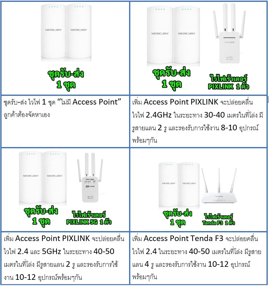 F1436 ไวไฟเร้าเตอร์ ไวไฟระยะไกล ตั้งค่าให้แล้ว เสียบสายใช้งานได้เลย ชนิด Point to Point สูงสุดไม่เกิน 1 กิโลเมตร MERCURY MWB201S ชนิด Outdoor กันฝน กันแดด