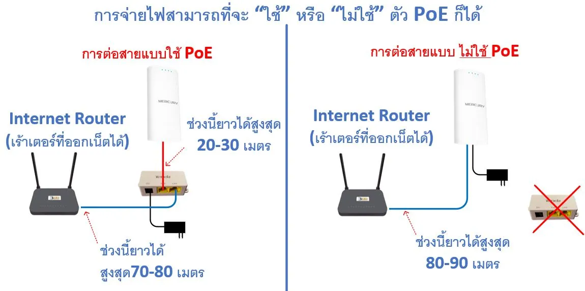 (ภาพด้านบน) ภาพการเชื่อมต่อ แบบใช้การจ่ายไฟแบบ PoE หรือ ไม่ใช้ PoE ก็ได้