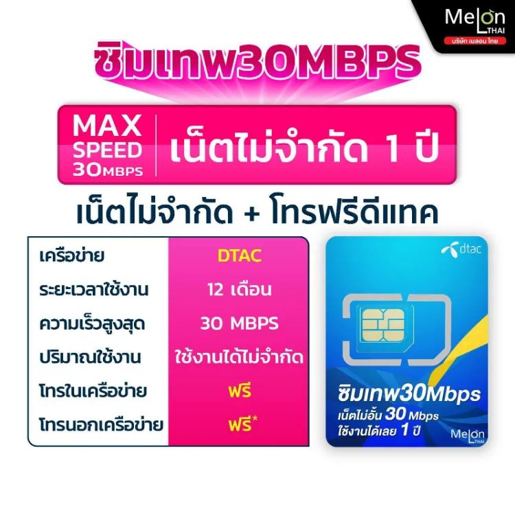 F1442 ซิมเทพดีแทค 30Mbps เน็ตไม่อั้น ไม่ลดสปีด โทรฟรีทุกเครือข่าย Sim net Dtac ซิมรายปี ซิมเน็ตไม่อั้น ออกใบกำกับภาษีได้