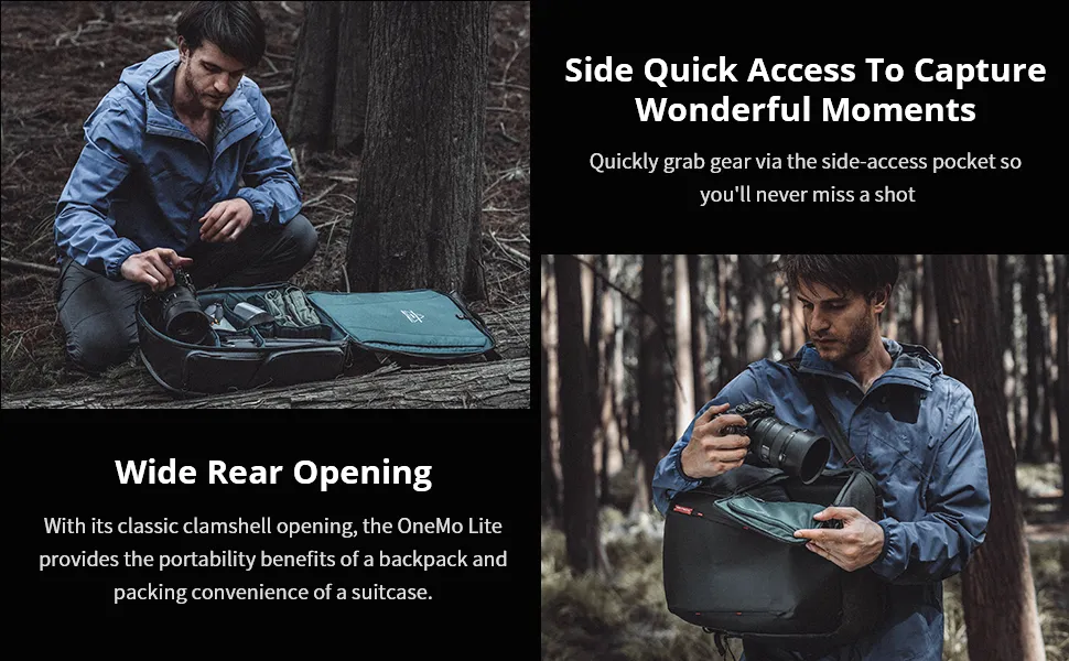 ผ้าด้านนอกทำมาจากการเคลือบ PU ประสิทธิภาพสูงซึ่งทนทานต่อการขีดข่วนกันสิ่งสกปรกกันฝนและกันน้ำกระเซ็นด้วยการปรับปรุงวัสดุและโครงสร้างน้ำหนักของบรรจุภัณฑ์ทั้งหมดถูกควบคุมที่1.65กิโลกรัม (ไม่รวมพาร์ติชั่น) ทำให้ง่ายต่อการเดินทางช่องเปิดด้านหน้าขนาดใหญ่และช่องแยกส่วนภายในเพื่อการจัดเก็บที่มีประสิทธิภาพมากขึ้นช่องซิปเข้าถึงเร็วด้านหนึ่งเพื่อให้เข้าถึงเร็ว perlengkapan kamera