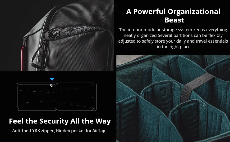 ระบบจัดเก็บข้อมูล “modulepro” ประกอบด้วยวงเวียนที่ปรับแต่งได้สำหรับความต้องการที่แตกต่างกันของคุณ ด้านหน้าด้านหลังและกระเป๋าด้านข้างมีไว้สำหรับจัดเก็บอุปกรณ์เพิ่มเติม คุณกระป๋องวางใช้เสื้อผ้าสำหรับคุณกล้อง DSLR ขาตั้งกล้องแล็ปท็อปโดรนและอุปกรณ์เดินทางอื่นๆได้อย่างง่ายดายด้วยพื้นที่ของตนเอง