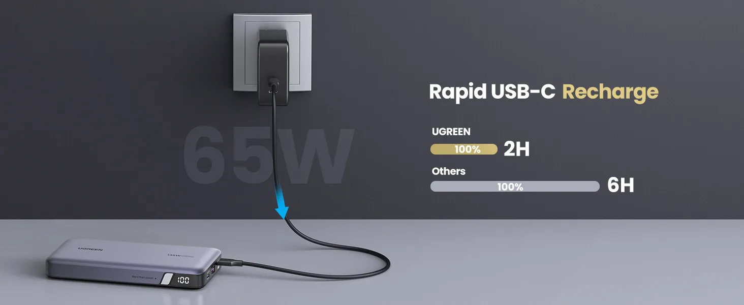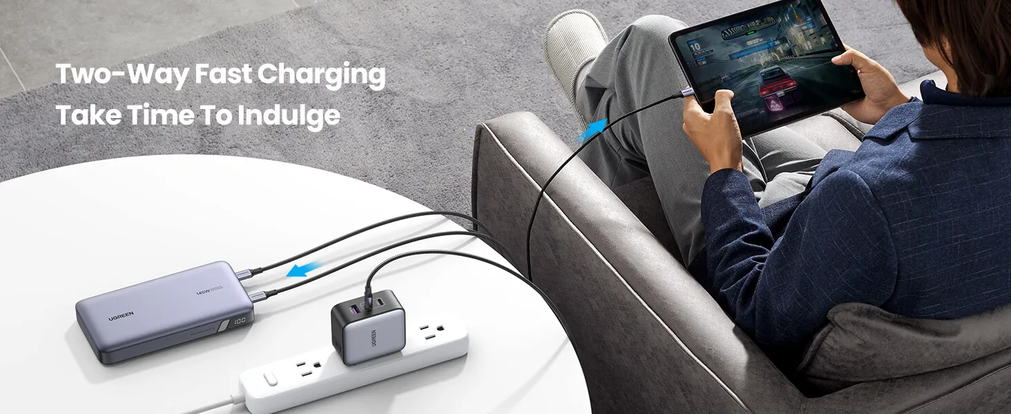 - การชาร์จไฟ USB อย่างรวดเร็ว C โดยใช้ที่ชาร์จ ugan ใช้เวลาเพียง2ชั่วโมง