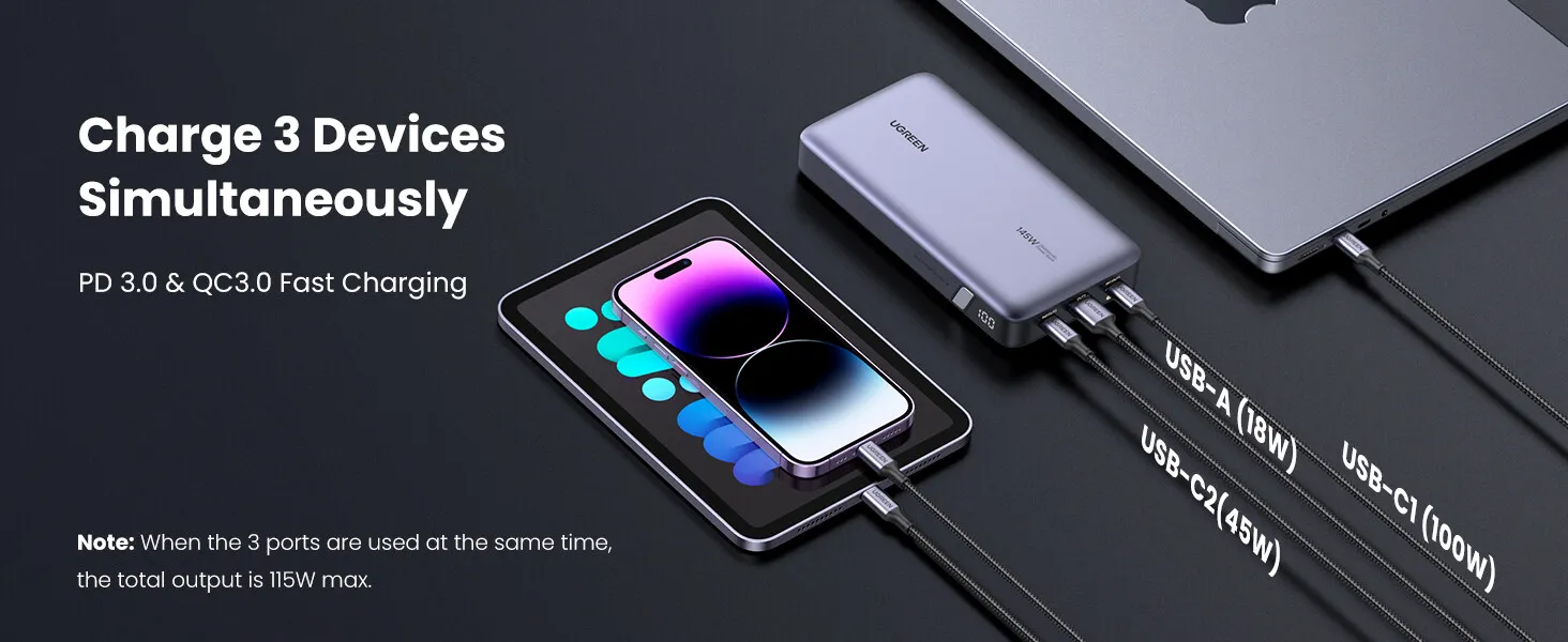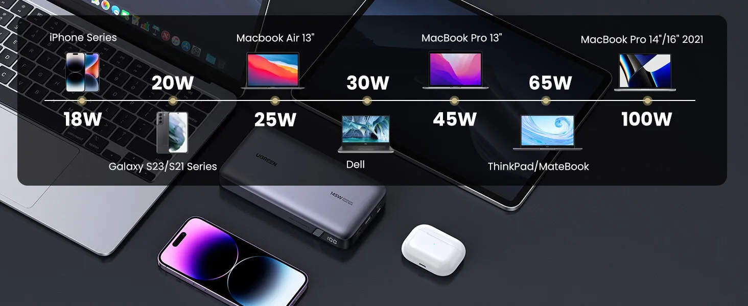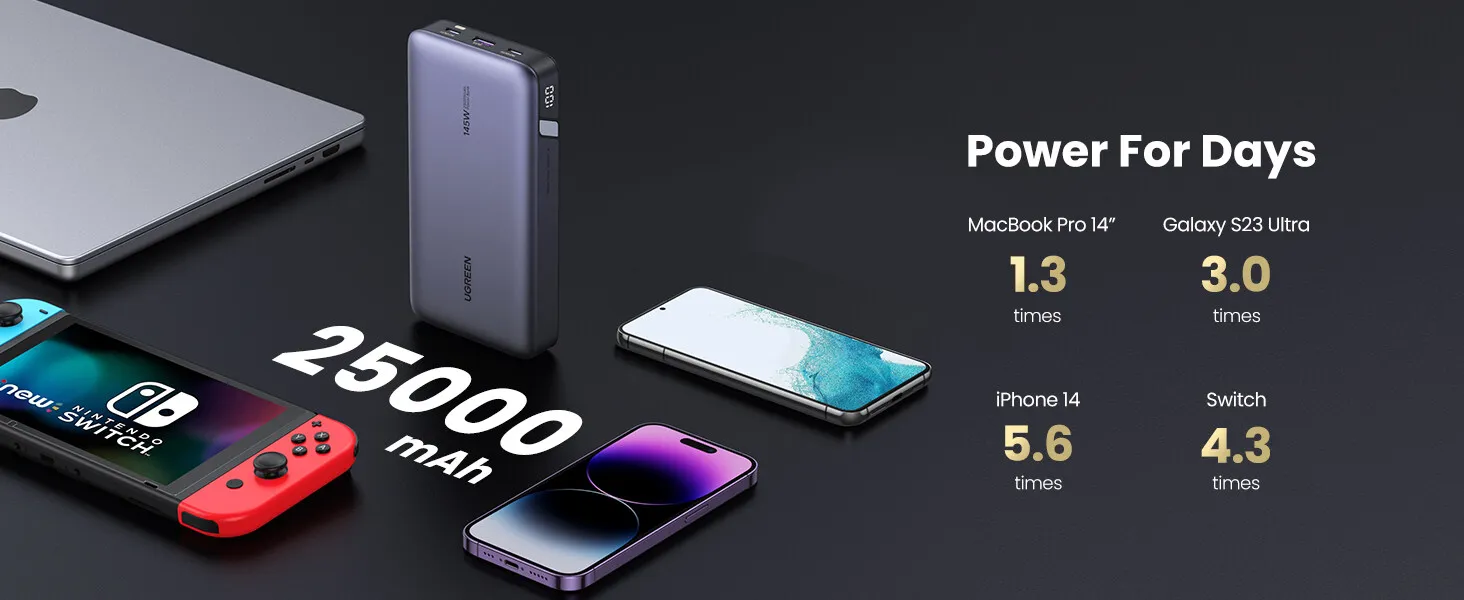 F1451 UGREEN พาวเวอร์แบงค์25000มิลลิแอมป์ชั่วโมง PD 145วัตต์ชาร์จเร็ว10000มิลลิแอมป์ต่อชั่วโมงสำหรับ Dell Lenovo MacBook Air ซัมซุง S23 iPhone 15 14 13 Pro Max สำหรับ Xiaomi 12T 11T Realme อะแดปเตอร์มือถือหัวเหว่ยโทรศัพท์