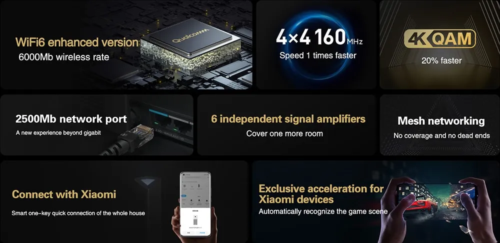 Xiaomi AX6000 aiot router เราเตอร์6000mbs เราเตอร์ wifi ซิม 5g wifi6 mesh wifi VPN 512เมกะไบต์ Qualcomm CPU ตาข่ายสัญญาณ repeater เครือข่ายภายนอกเครื่องขยายเสียง Mi บ้าน