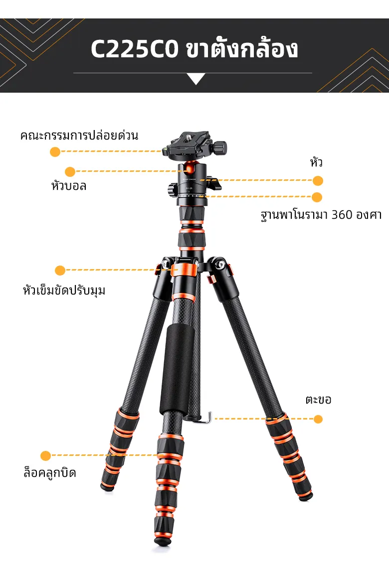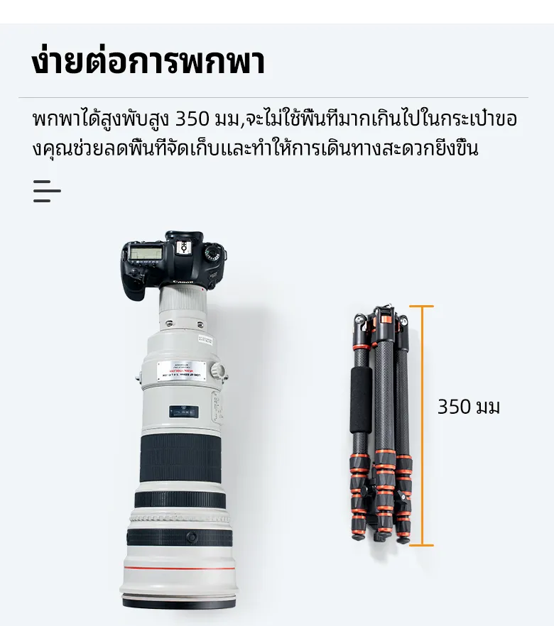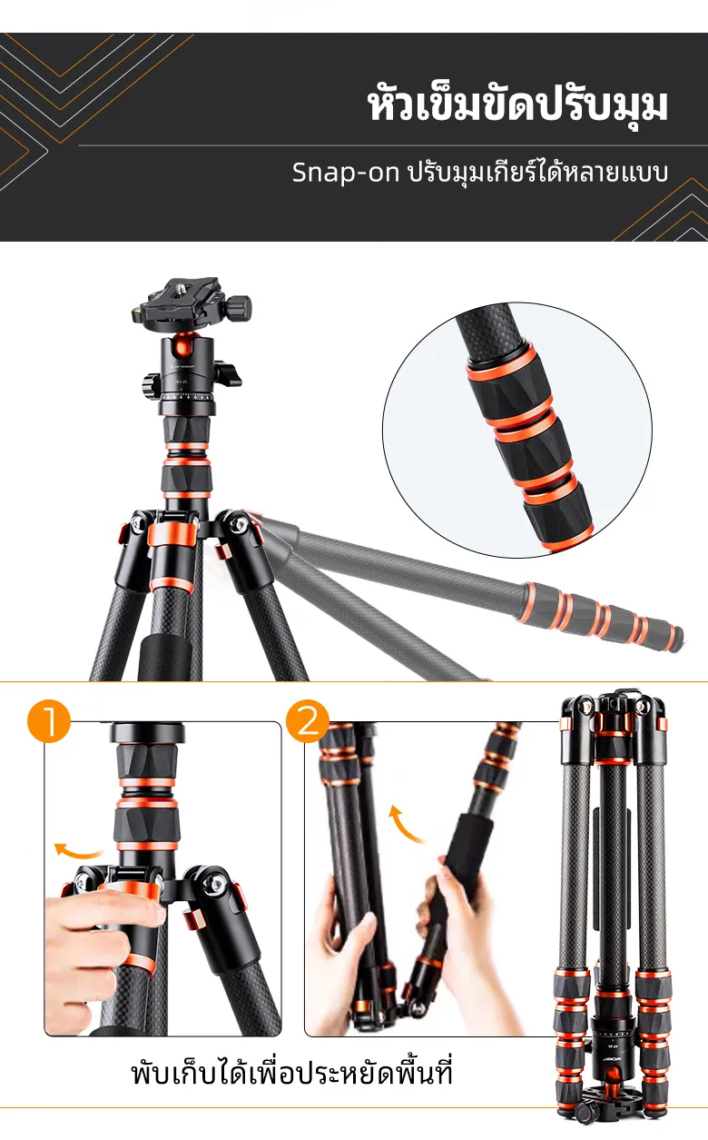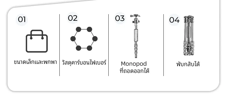 - 【 Monopod ที่ถอดออกได้】ขาตั้งกล้องน้ำหนักเบาคาร์บอนไฟเบอร์นี้สามารถถอดประกอบได้อย่างรวดเร็วด้วยสกรูแกนกลางและเปลี่ยนเป็นโมโนพอดซึ่งเป็นทางเลือกในการถ่ายภาพได้อย่างง่ายดาย