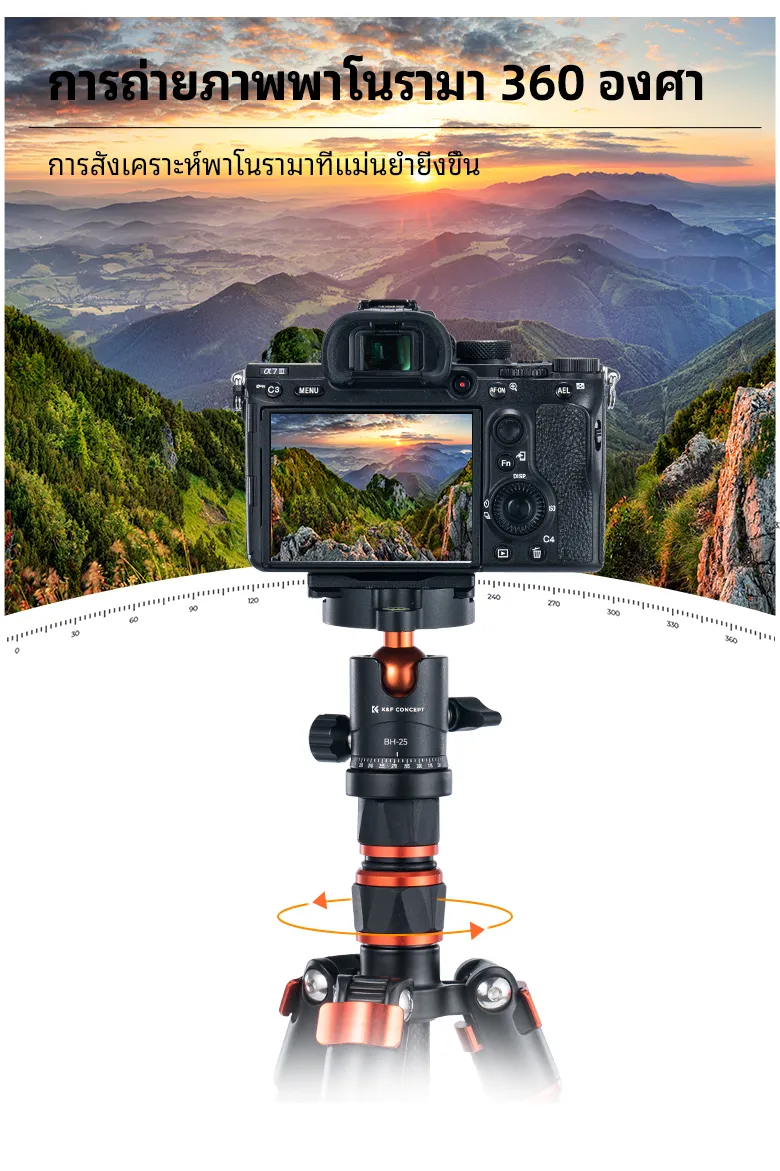 - 【360°Panorama ball head 】ลูกบอลหัว 25 มม. ออกแบบมาเป็นพิเศษหมุนได้ 360° และรับมุมฟรีช่วยให้คุณได้ภาพพาโนรามาที่สมบูรณ์แบบและน่าทึ่งทุกครั้ง