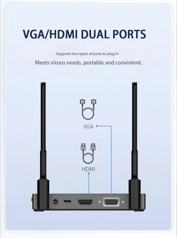 4.ปลั๊กแอนด์เพลย์: การตั้งค่าปลั๊กแอนด์เพลย์ติดตั้งได้ง่ายไม่จำเป็นต้องติดตั้งสายเคเบิลราคาแพงและไม่สะดวก ไม่จำเป็นต้องใช้ซอฟต์แวร์หรือการเชื่อมต่อ WIFI เครื่องส่งสัญญาณ: อินพุต HDMI 1x ตัวรับ: เอาต์พุต HDMI/VGA 1x