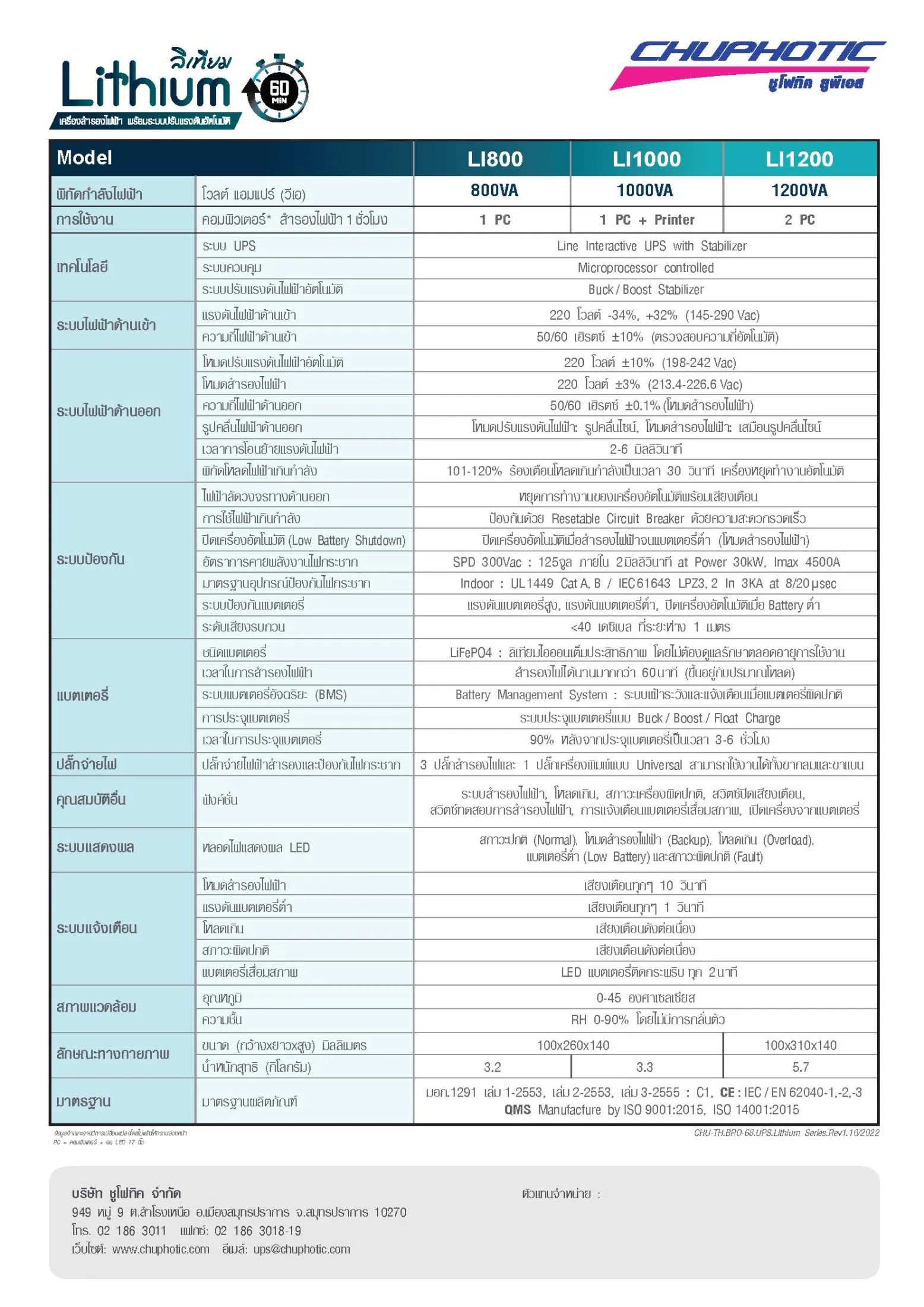 เครื่องสำรองไฟ UPS Chuphotic Lithium LI1000 LI1200 V2.0 500-600W สินค้ามีประกัน มอก. และ ISO9001
