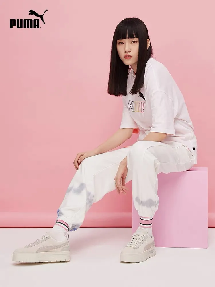 F1510 PUMA Mayze รองเท้าผ้าใบพื้นหนาสำหรับผู้หญิงสีขาว