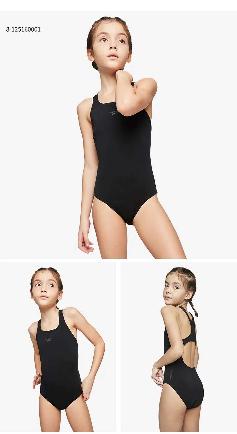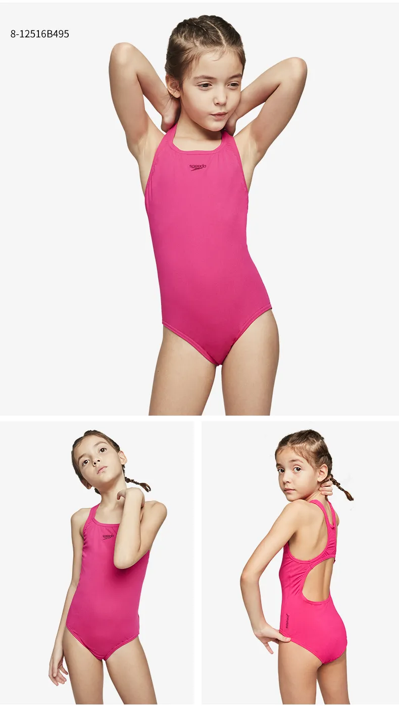 Speedo ชุดว่ายน้ำสำหรับเด็กชุดแข่งว่ายน้ำแบบมืออาชีพสำหรับเด็กหญิง ชุดว่ายน้ำวันพีซทรงสามเหลี่ยมสำหรับเด็กวัย5-12ขวบ