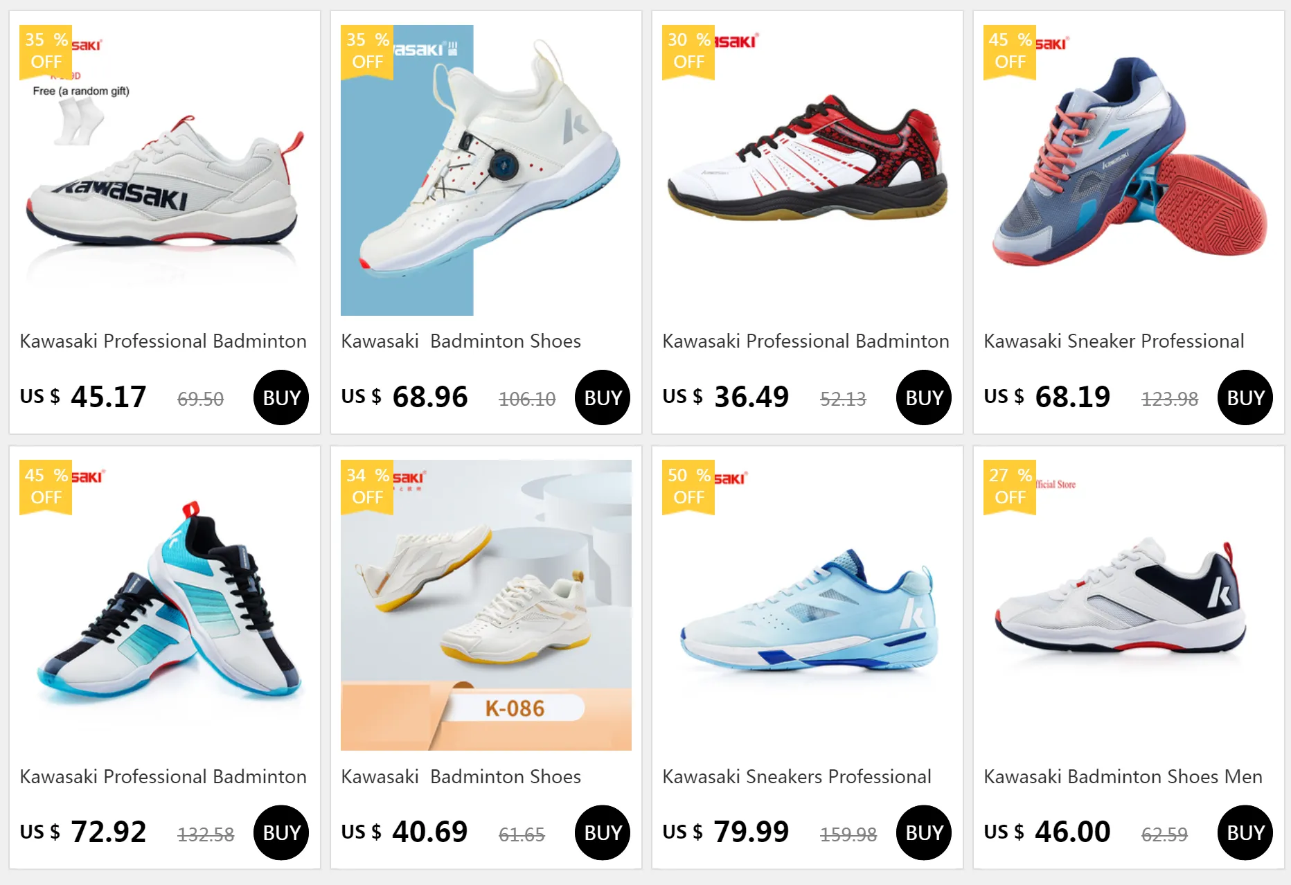 F1550 Kawasaki รองเท้าแบดมินตัน Breathable Anti-Slippery Sport Shoes For Men Women Super Light Sneakers K-170D