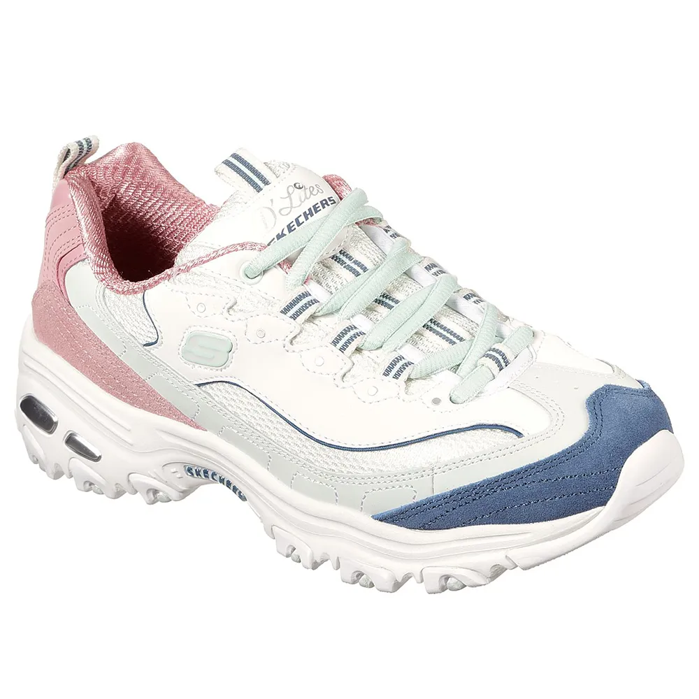 Step up your style in versatility and comfort with Skechers D’Lites® shoe. This lace-up sneaker features a leather and athletic mesh upper with a cushioned Air-Cooled Memory Foam® comfort insole. Features: – Air-Cooled Memory Foam® cushioned comfort insole – Leather and breathable athletic mesh upper – Sporty casual sneaker in a lace-up design – Lightweight shock-absorbing supportive midsole – Flexible traction outsole – Skechers® logo details