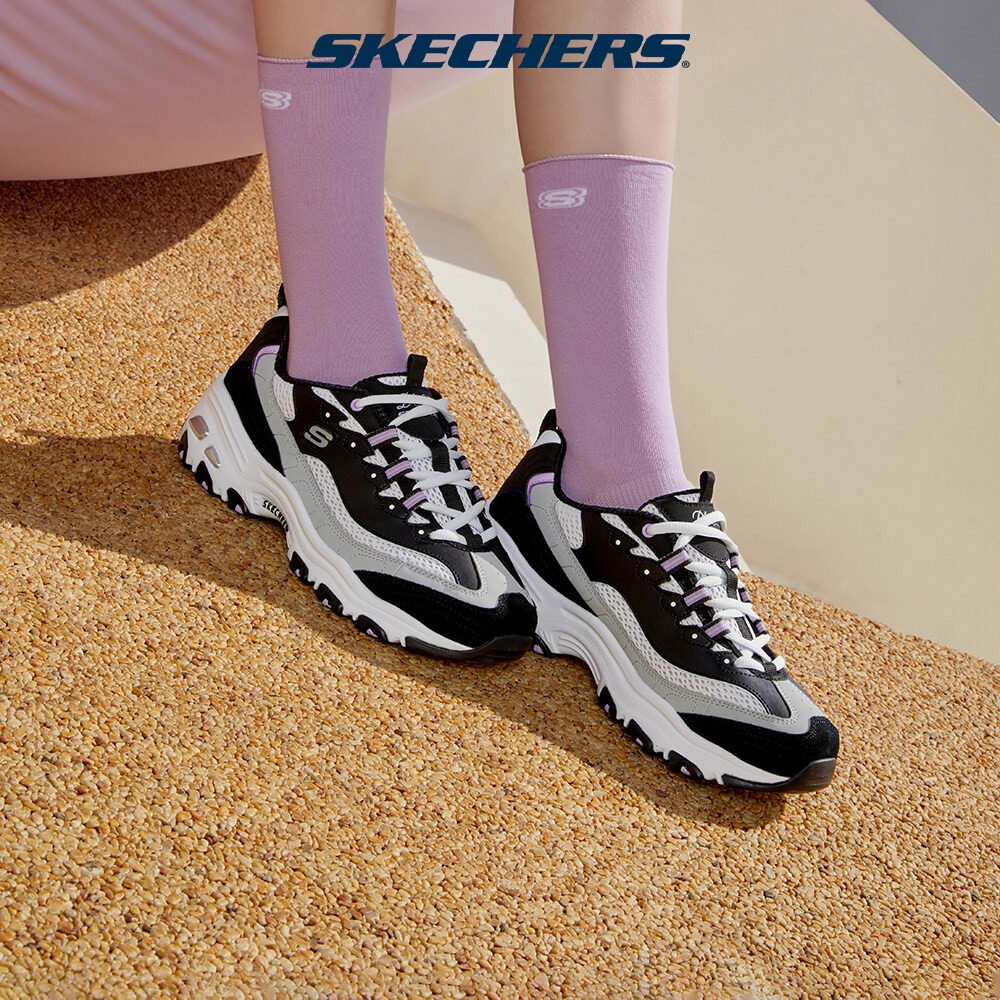 Take a first step towards classic sporty style and upgraded comfort with Skechers D’Lites®. This sporty fashion style features a cushioned Air-Cooled Memory Foam® insole. Features: – Skechers Air-Cooled Memory Foam® cushioned comfort insole – Lightweight shock-absorbing supportive midsole – Flexible rubber traction outsole – Skechers® logo detail