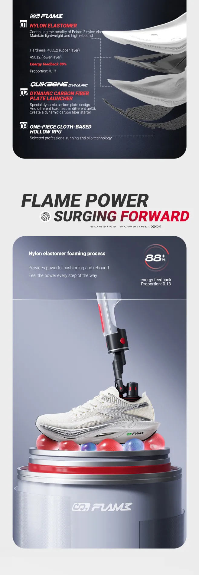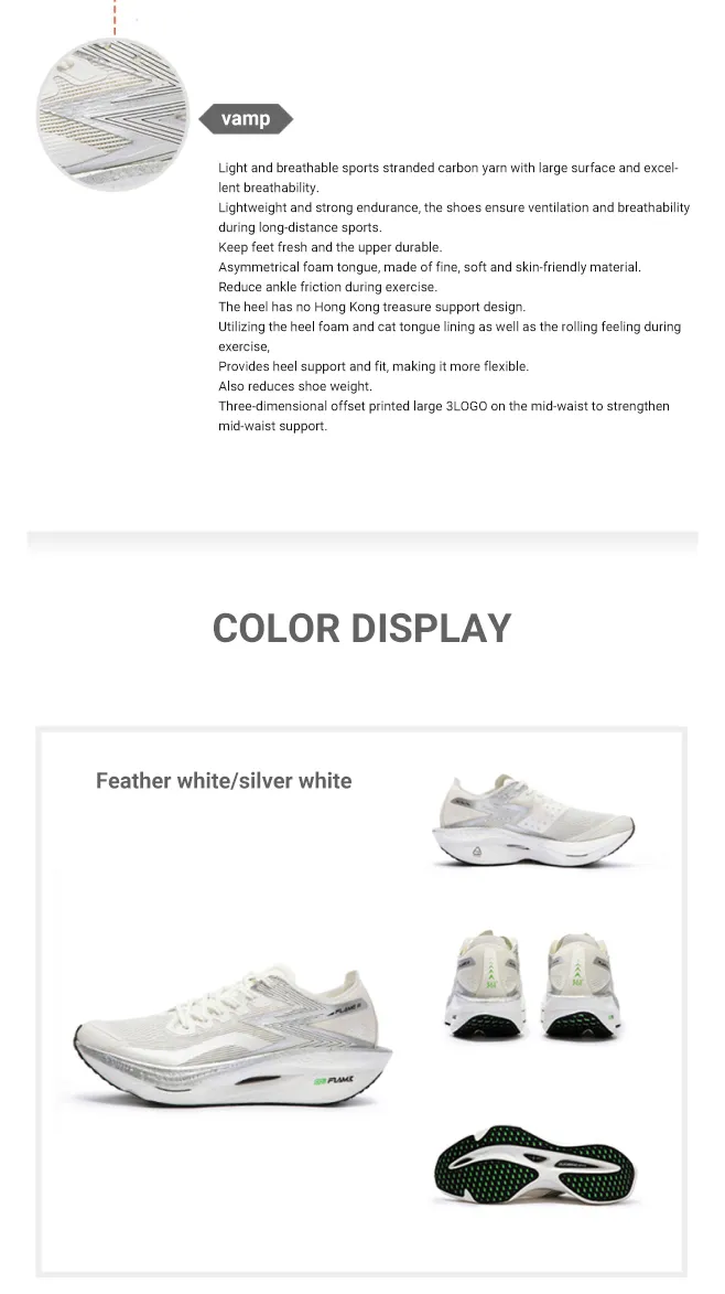 F1584 361 Degrees Flame 3 Sports Shoes PB Shock Absorbing Training Running Shoes for Professional Marathon Racing Full Carbon Palm Pad