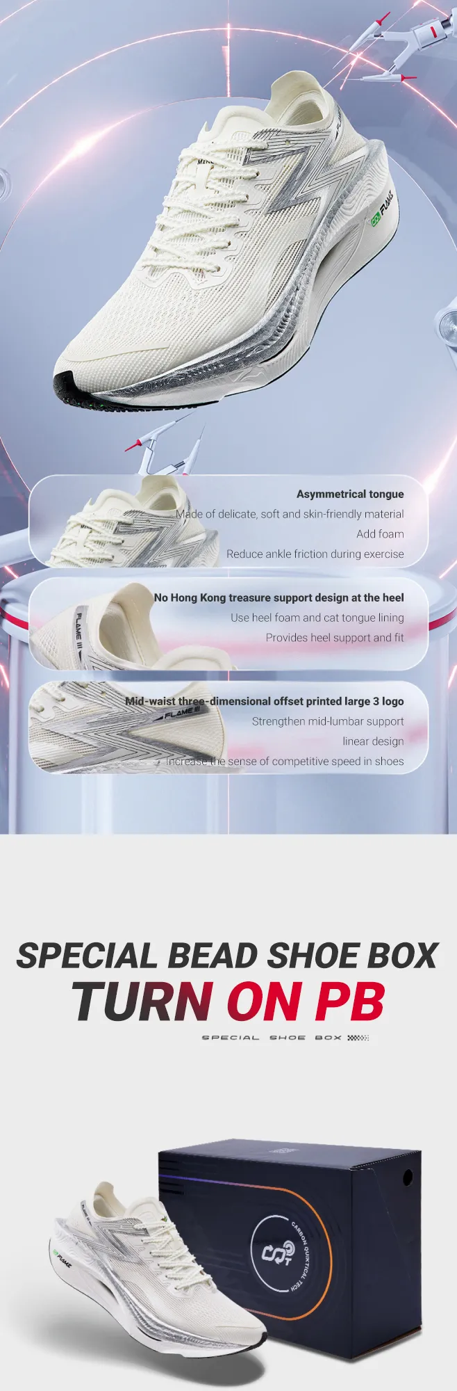 361 Degrees Flame 3 Sports Shoes PB Shock Absorbing Training Running Shoes for Professional Marathon Racing Full Carbon Palm Pad