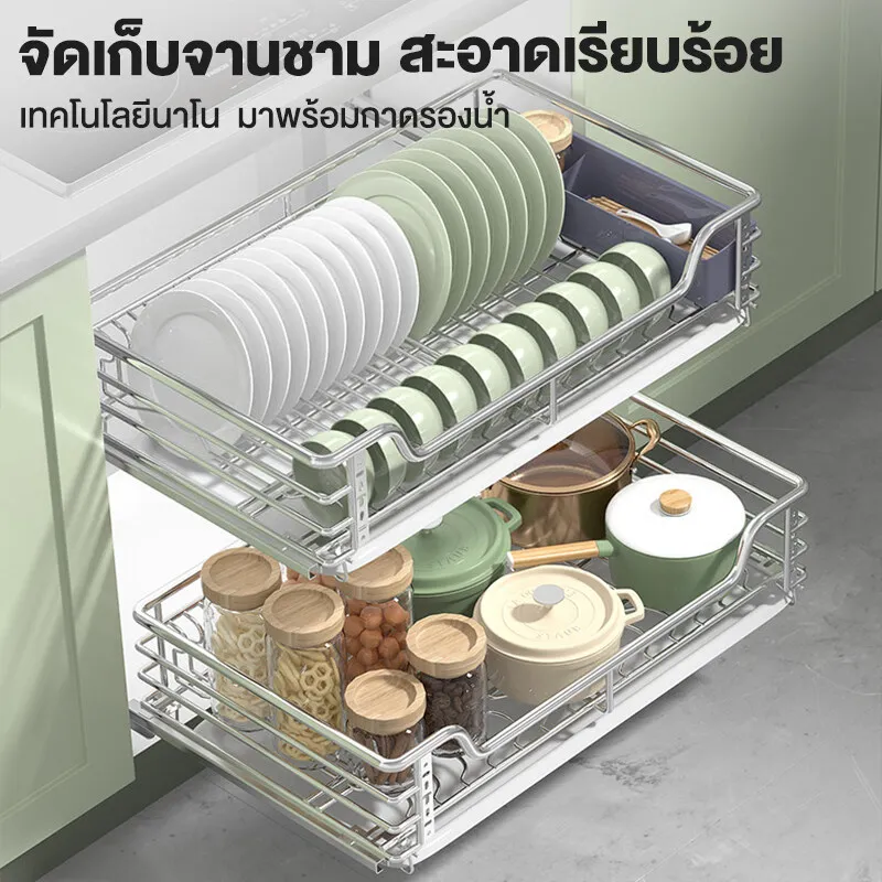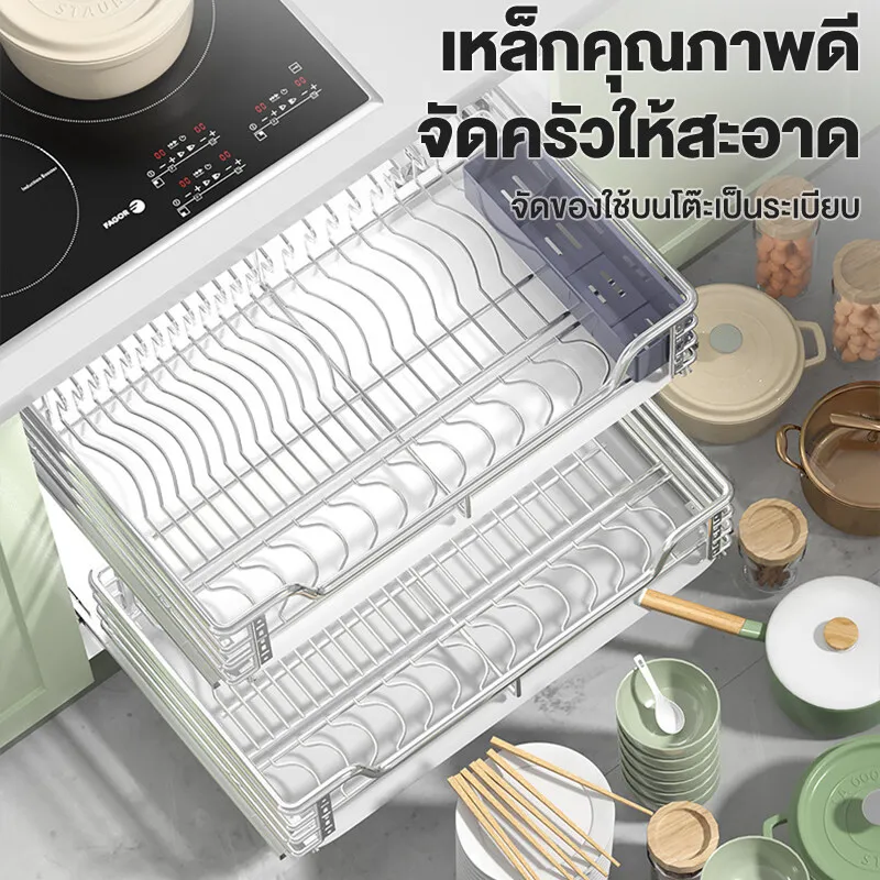 ลิ้นชักคว่ำจาน ลิ้นชักสแตนเลสใส่ชาม ที่คว่ำจานติดตู้แขวน ตะแกรงคว่ำจาน ชั้นคว่ำจานชาม ชั้นคว่ำจานแบบดึงออกได้ ตะแกรงเหล็กคว่ำจาน