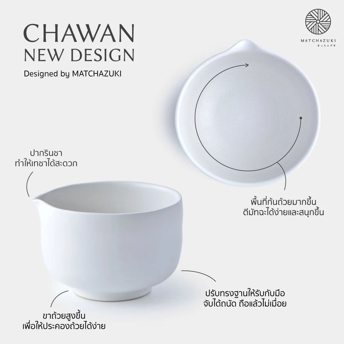 4. ถ้วยชงชา (Chawan) ใช้สำหรับการละลายผงชา มีจอกเพื่อให้เทชาได้ง่าย