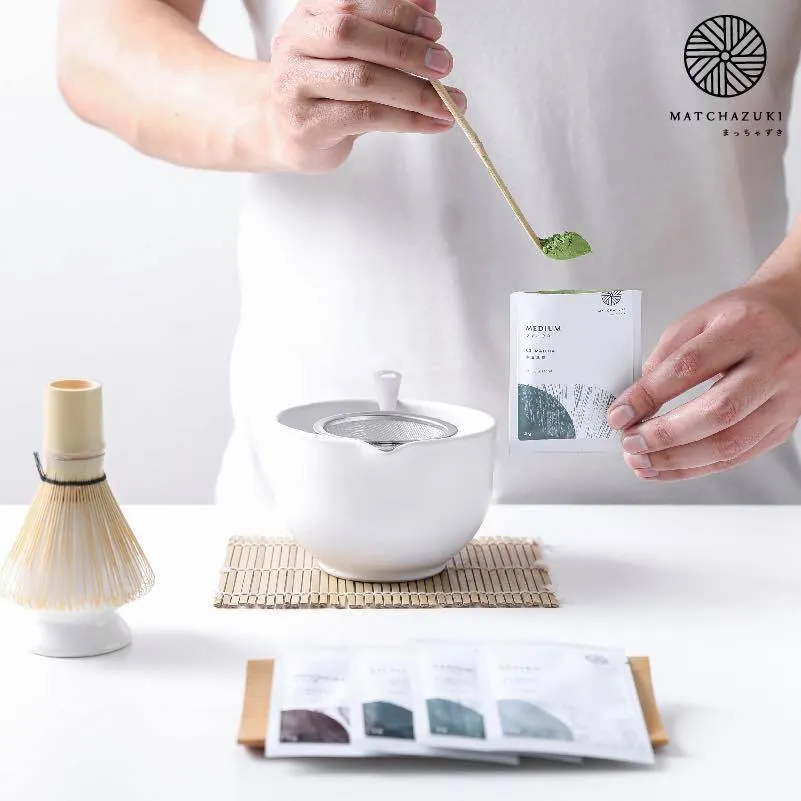 •ชุดชงชาเริ่มต้นจาก MATCHAZUKI ภายในเซ็ตประกอบไปด้วยอุปกรณ์พื้นฐานที่จำเป็นสำหรับการชงชาทั้งหมด และผงมัทฉะชุดทดลองครบทุกเกรด