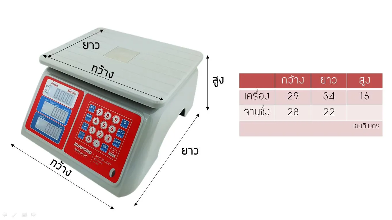 • เครื่องชั่งดิจิตอล คำนวณราคา กันน้ำ 100%SUNFORD ACS-30-JC81เหมาะสำหรับ
