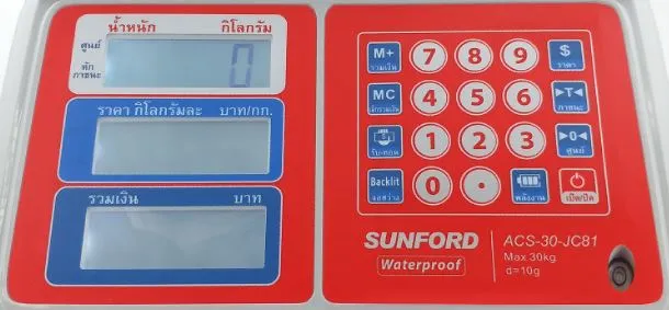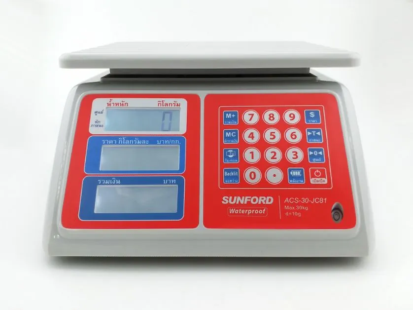 • คุณสมบัติของเครื่องชั่งดิจิตอล คำนวณราคา กันน้ำ 100%SUNFORD ACS-30-JC81