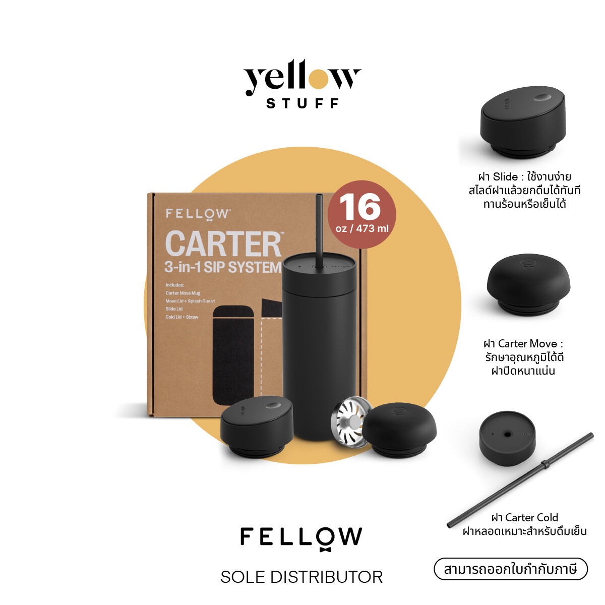 Fellow – Carter Move Mug 16 ออนซ์ พร้อม ฝา 3-in-1 Sip System