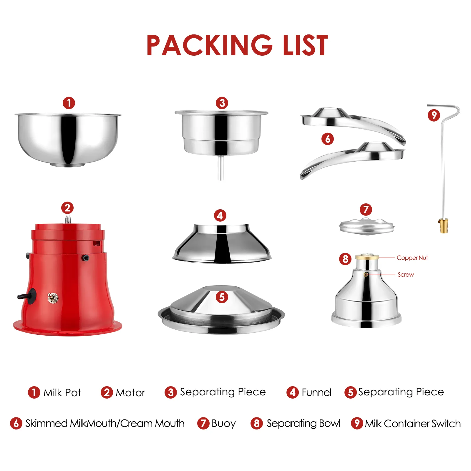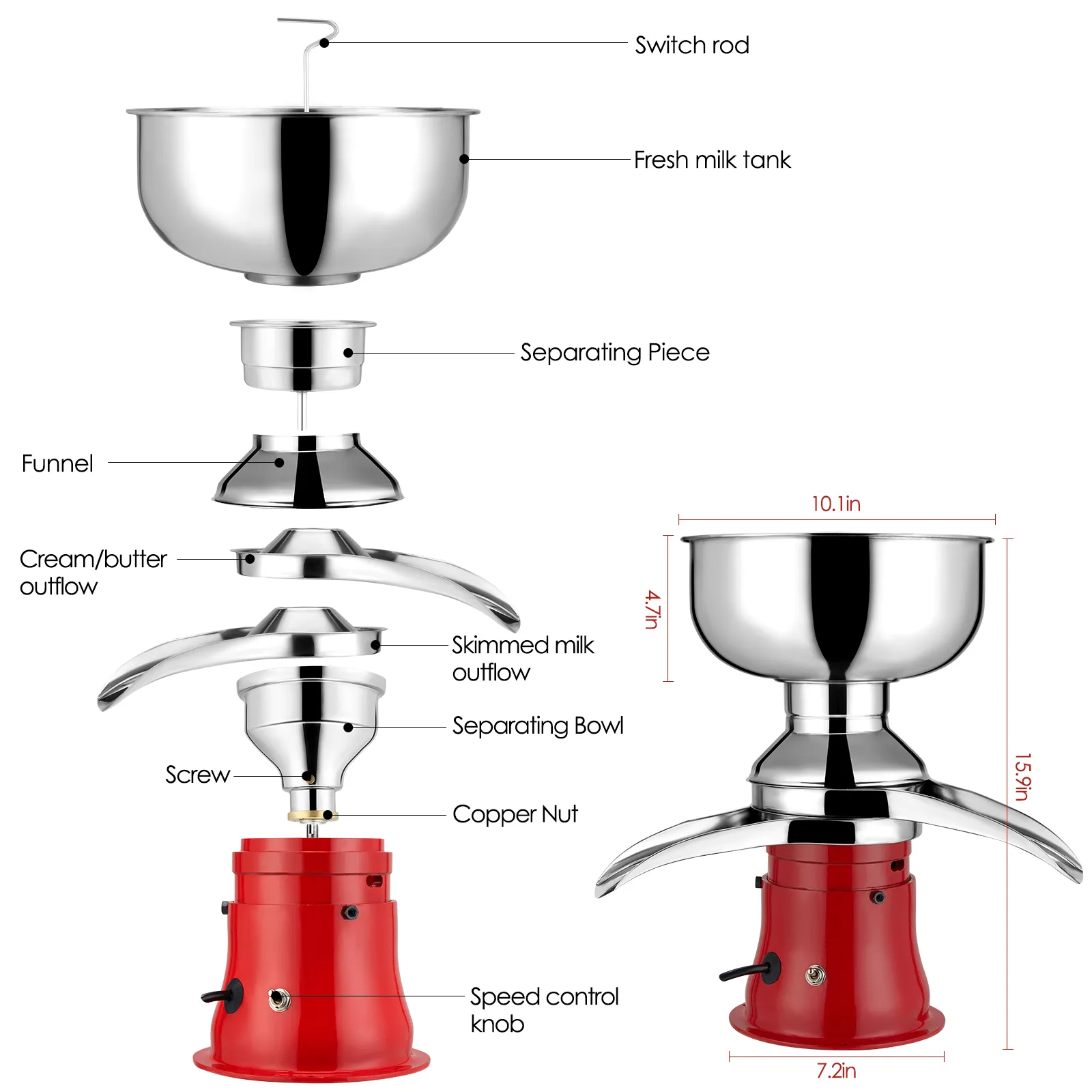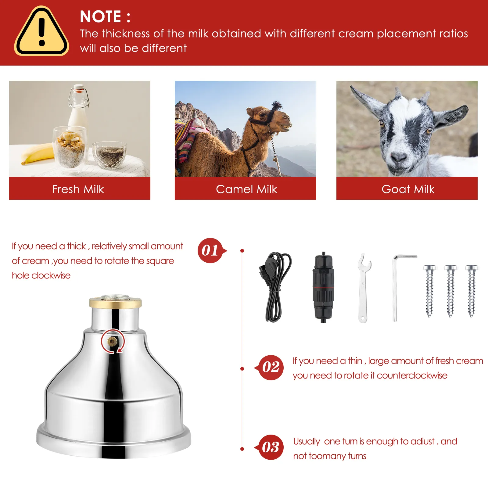 • * มัลติฟังก์ชั่นและอเนกประสงค์: เครื่องสามารถใช้ได้กับนมดิบทุกประเภท เข้ากันได้กับนมดิบทุกชนิด ใช้มันแยกนม นมแพะ หรือนมแพะ
