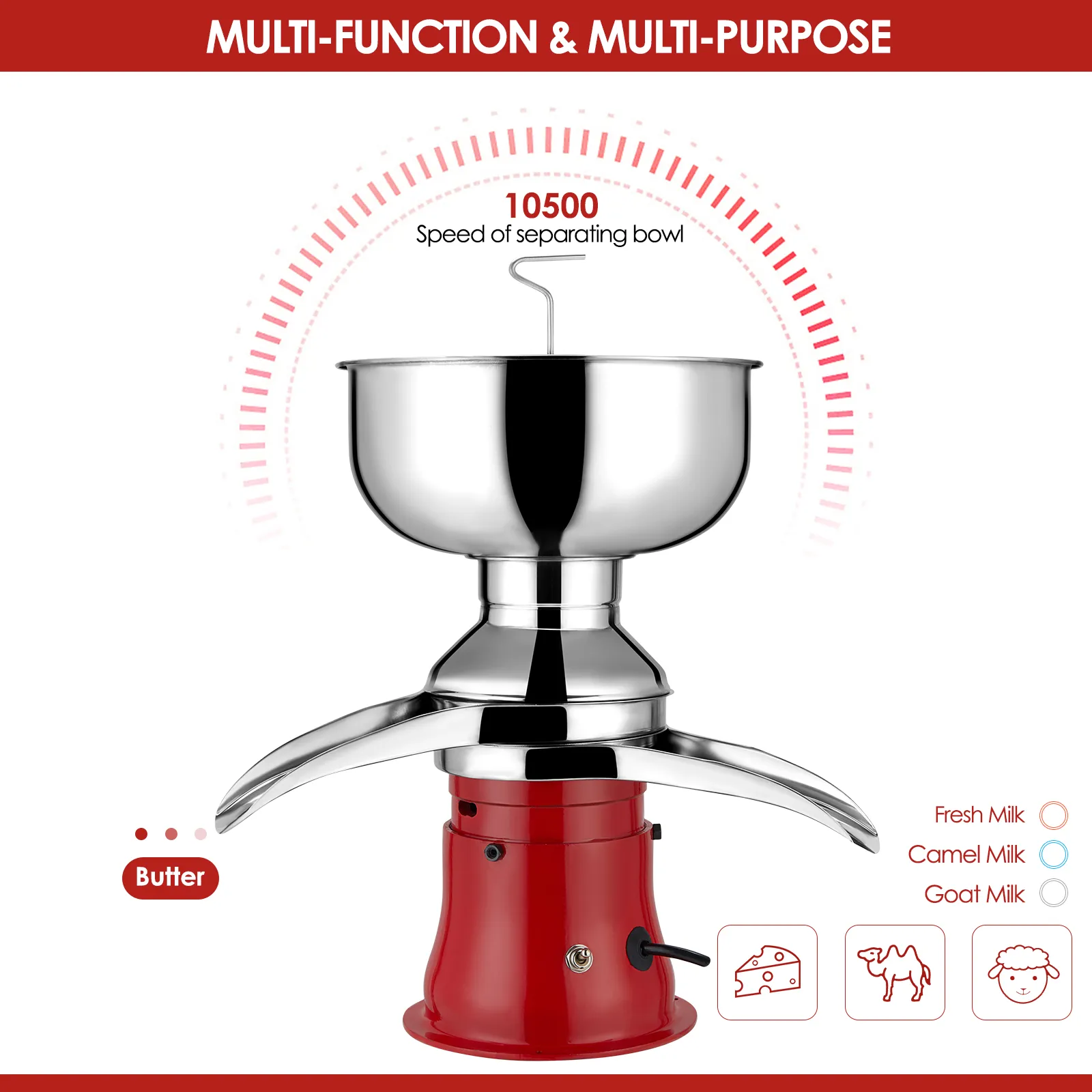 * มัลติฟังก์ชั่นและอเนกประสงค์: เครื่องสามารถใช้ได้กับนมดิบทุกประเภท เข้ากันได้กับนมดิบทุกชนิด ใช้มันแยกนม นมแพะ หรือนมแพะ