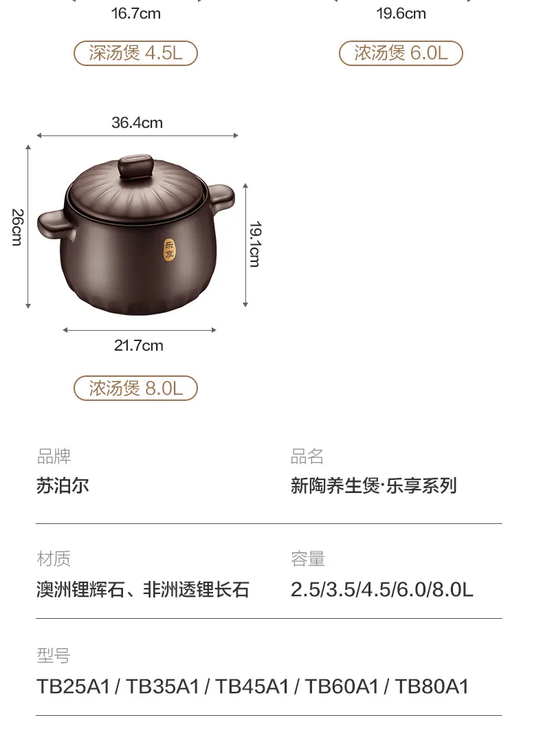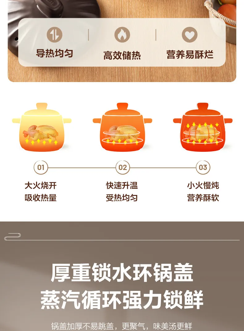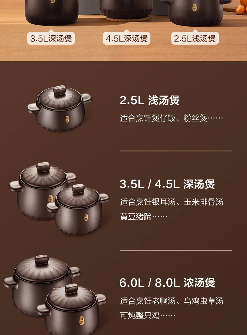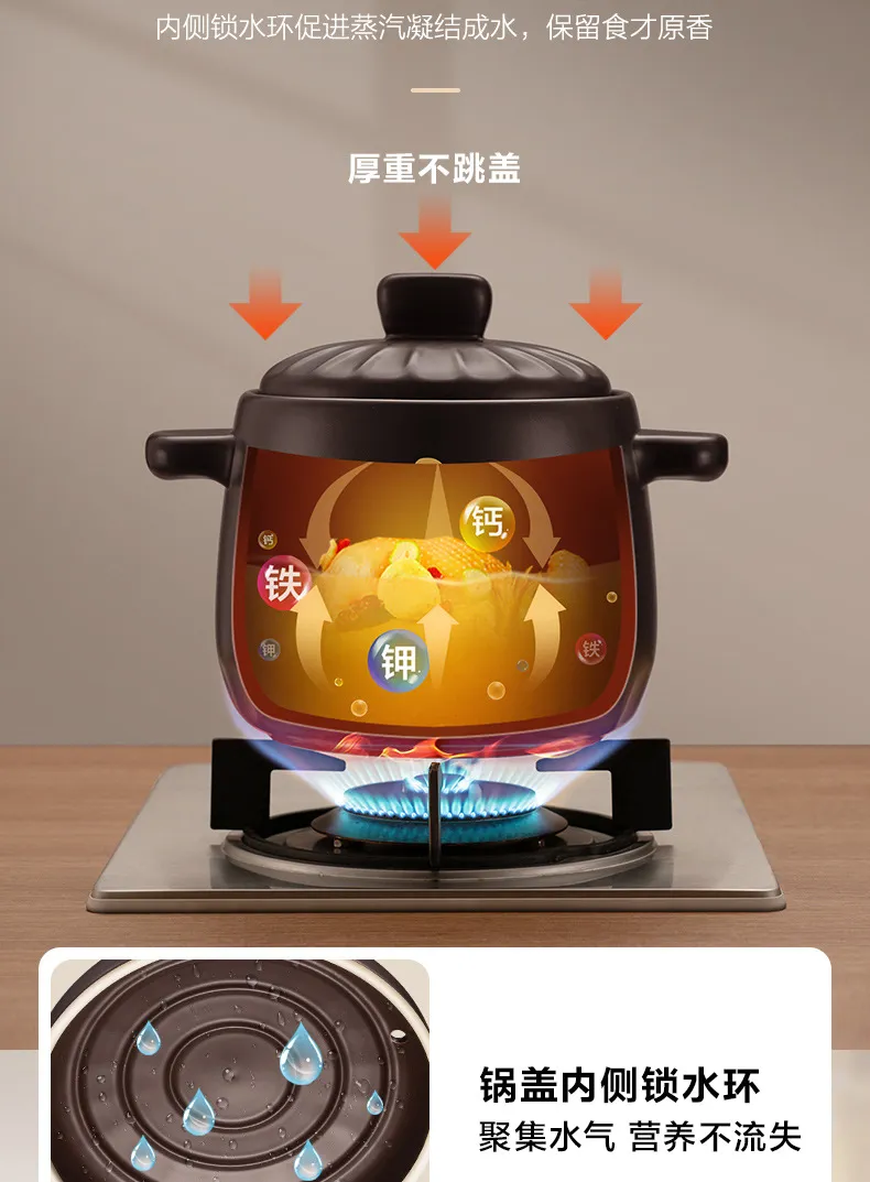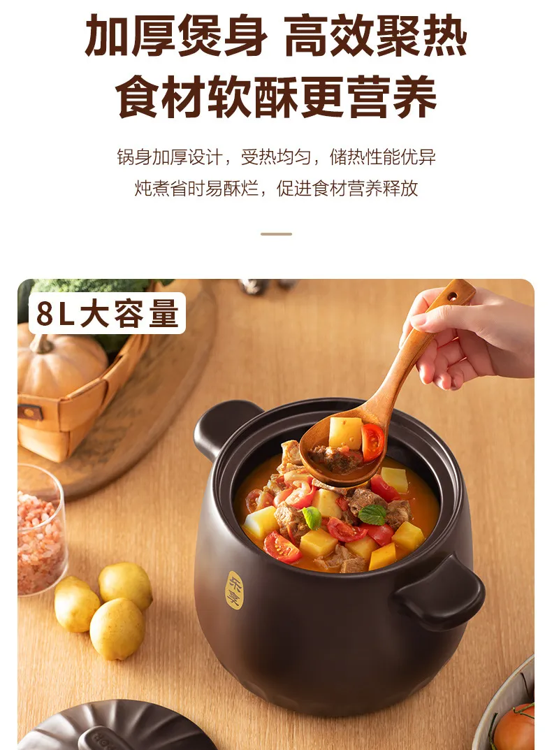 หม้อเซรามิกย่อย,กาทราย,หม้อถนอมอาหารสุขภาพ,กาทราย,หม้อซุปลึก,หม้อตุ๋น,หม้อหิน,1.5หม้อซุป-Xining 8L