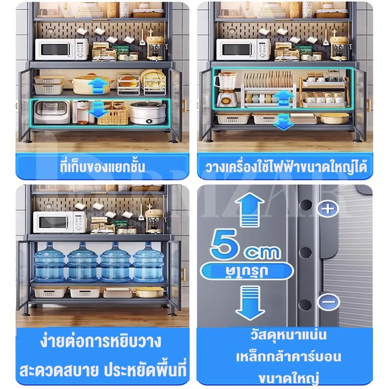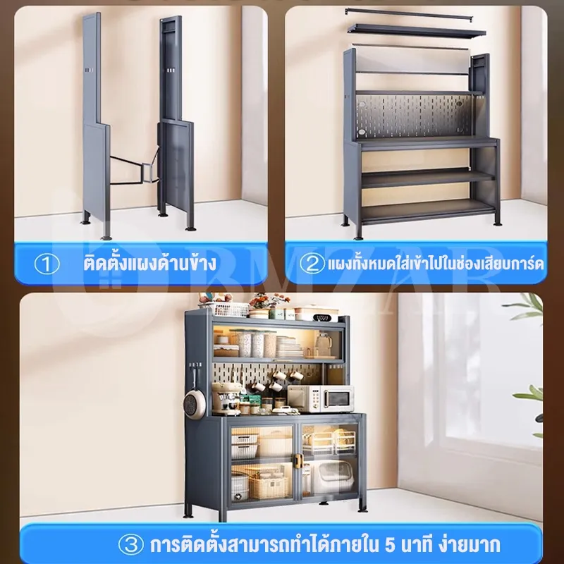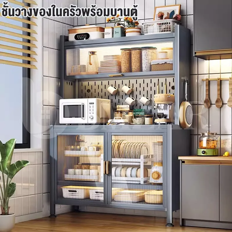 BMZAR ตู้กับข้าวห้องครัว ครัวตู้กับข้าวพร้อมประตูตู้ แบ่งเป็นตู้กับชั้นวาง ตู้เก็บของอเนกประสงค์ ชั้นวางของในครัว ชั้นวางไมโครเวฟ COD