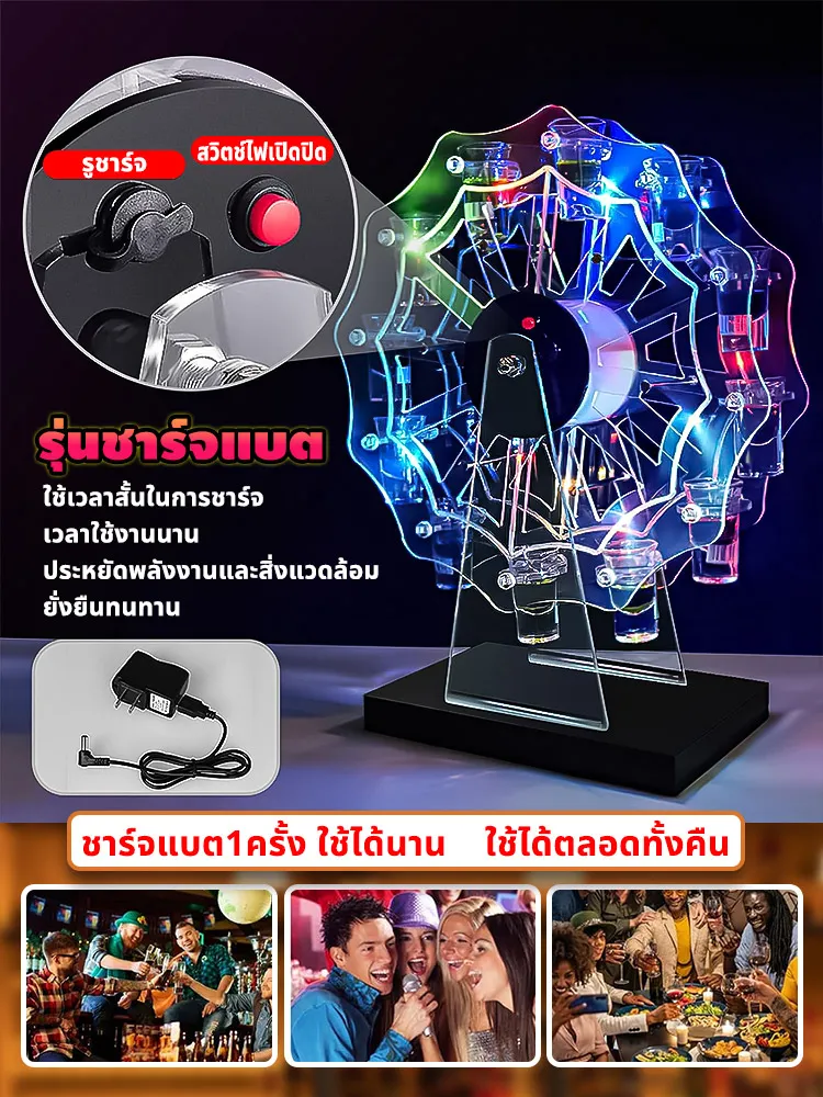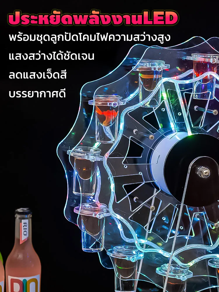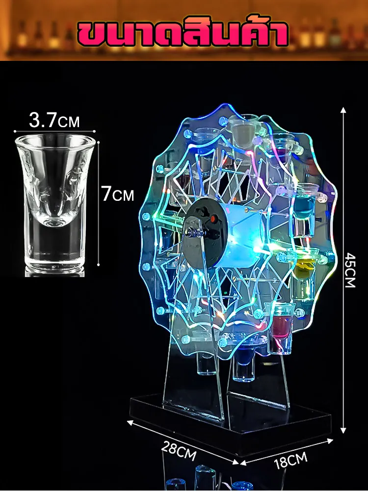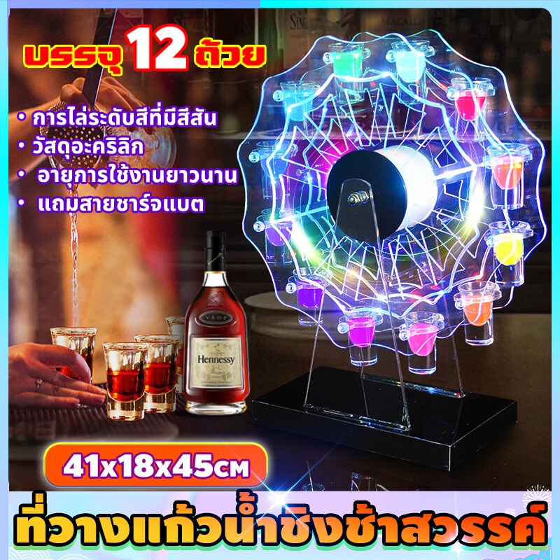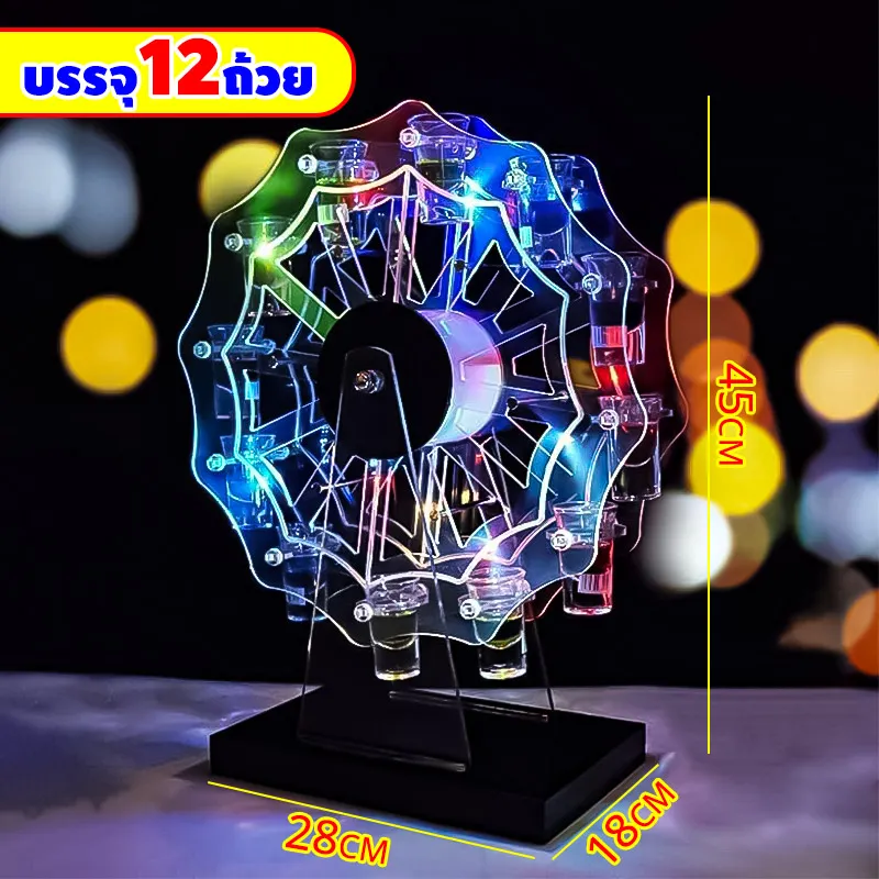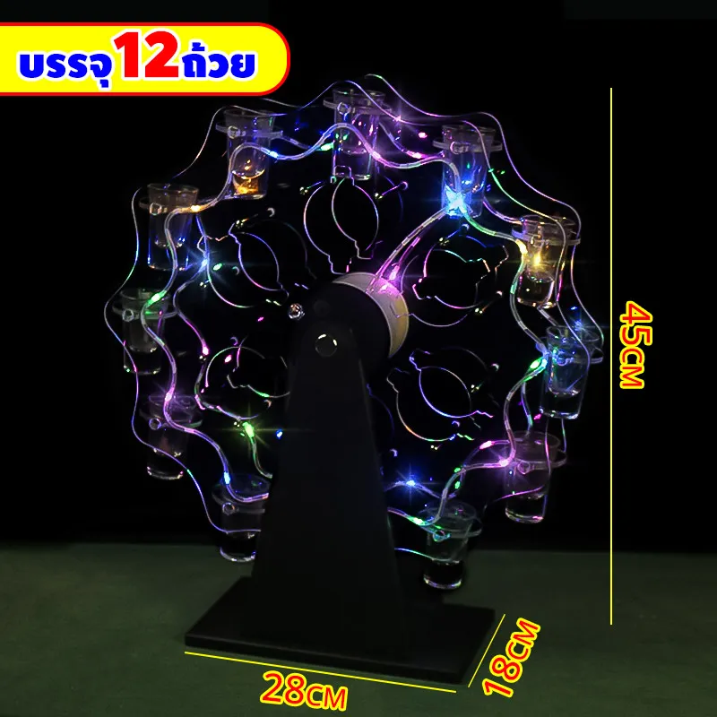 F1703 งานปาร์ตี้ต้องมา ชิงช้าสวรรค์ค็อกเทล ชิงช้าแก้วช็อต ชิงช้าสวรรค์ LEDเรืองแสง เรืองแสงแบบชาร์จไฟได้ มี12แก้ว เพิ่มสีสันให้งานเลี้ยง ที่วางแก้วน้ำชิงช้าสวรรค์ ที่วางแก้วค็อกเทล ที่วางแก้วช๊อตค๊อกเทล ชั้นวางแก้วไวน์ ชิงช้าคอกเทล ชิงช้าเหล้า