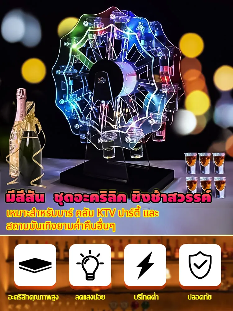 งานปาร์ตี้ต้องมาชิงช้าสวรรค์ค็อกเทล ชิงช้าอะคริลิค ชิงช้าสวรรค์ LEDเรืองแสง เรืองแสงแบบชาร์จไฟได้ มี12แก้ว เพิ่มสีสันให้งานเลี้ยง ที่วางแก้วน้ำชิงช้าสวรรค์ ที่วางแก้วค็อกเทล บาร์ ไฟงานเลี้ยงปาร์ตี้ ที่วางแก้วช๊อตค๊อกเทล ชั้นวางแก้วไวน์ ชิงช้าแก้วช็อต