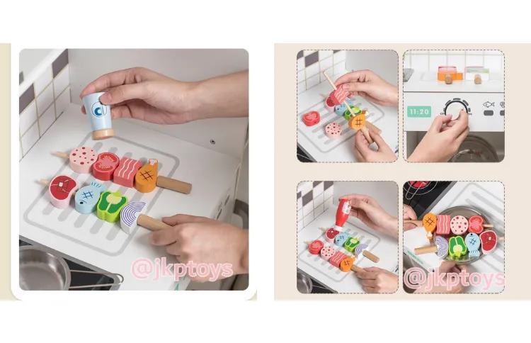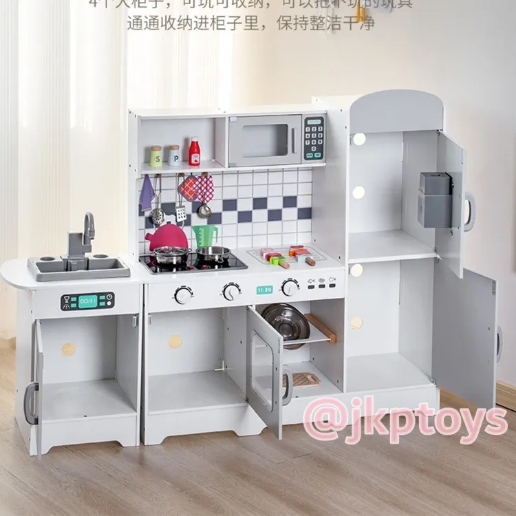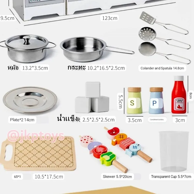 F1709 มาใหม่ Todds & Kids Toys by JKP Toys ชุดครัว ตู้เย็น สูง 96.5ซม ไมโครเวฟ เตาอบ อ่างล้างจาน มีเสียง มีไฟ ของเล่นไม้เสริมทักษะ ของเล่นบทบาทสมมติ