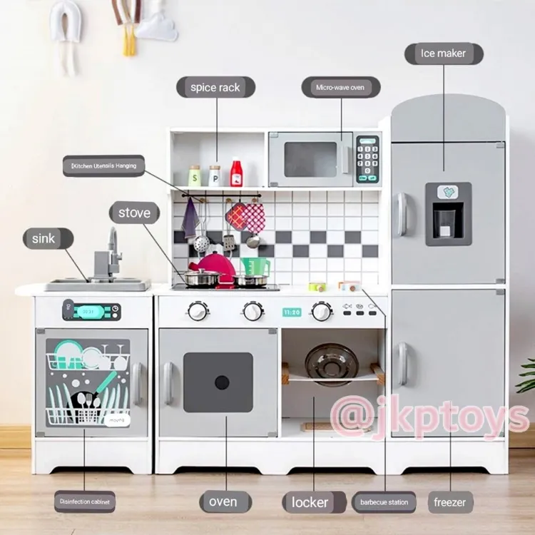 Todds & Kids Toys by JKP Toys ชุดครัว ตู้เย็น สูง 96.5ซม ไมโครเวฟ เตาอบ อ่างล้างจาน มีเสียง มีไฟ ของเล่นไม้เสริมทักษะ ของเล่นบทบาทสมมติ