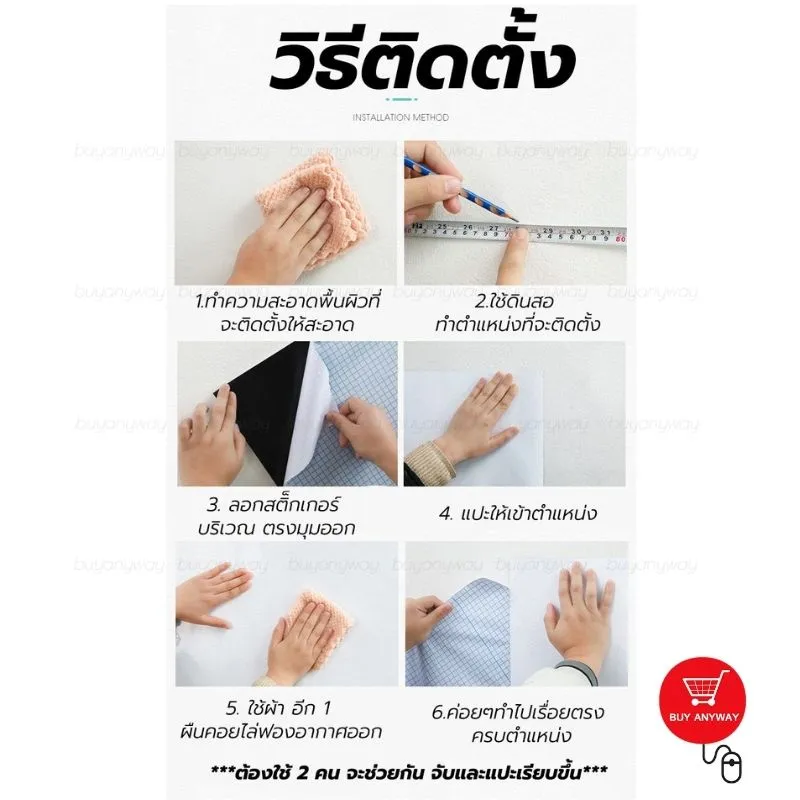 - 📍 ไม่ต้องเจาะผนังให้เป็นรอย สามารถลอกสติ๊กเกอร์ออกแล้วติดที่ผนังได้เลย