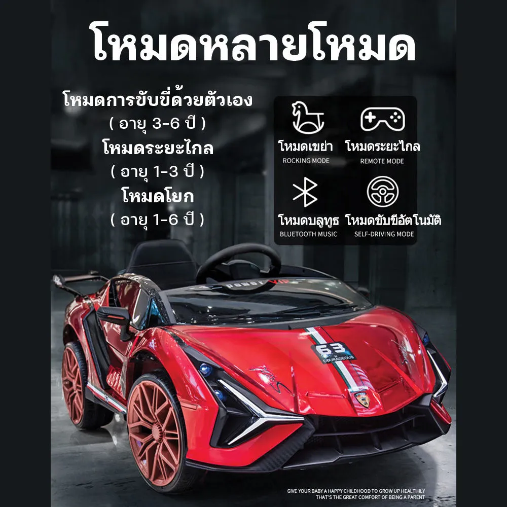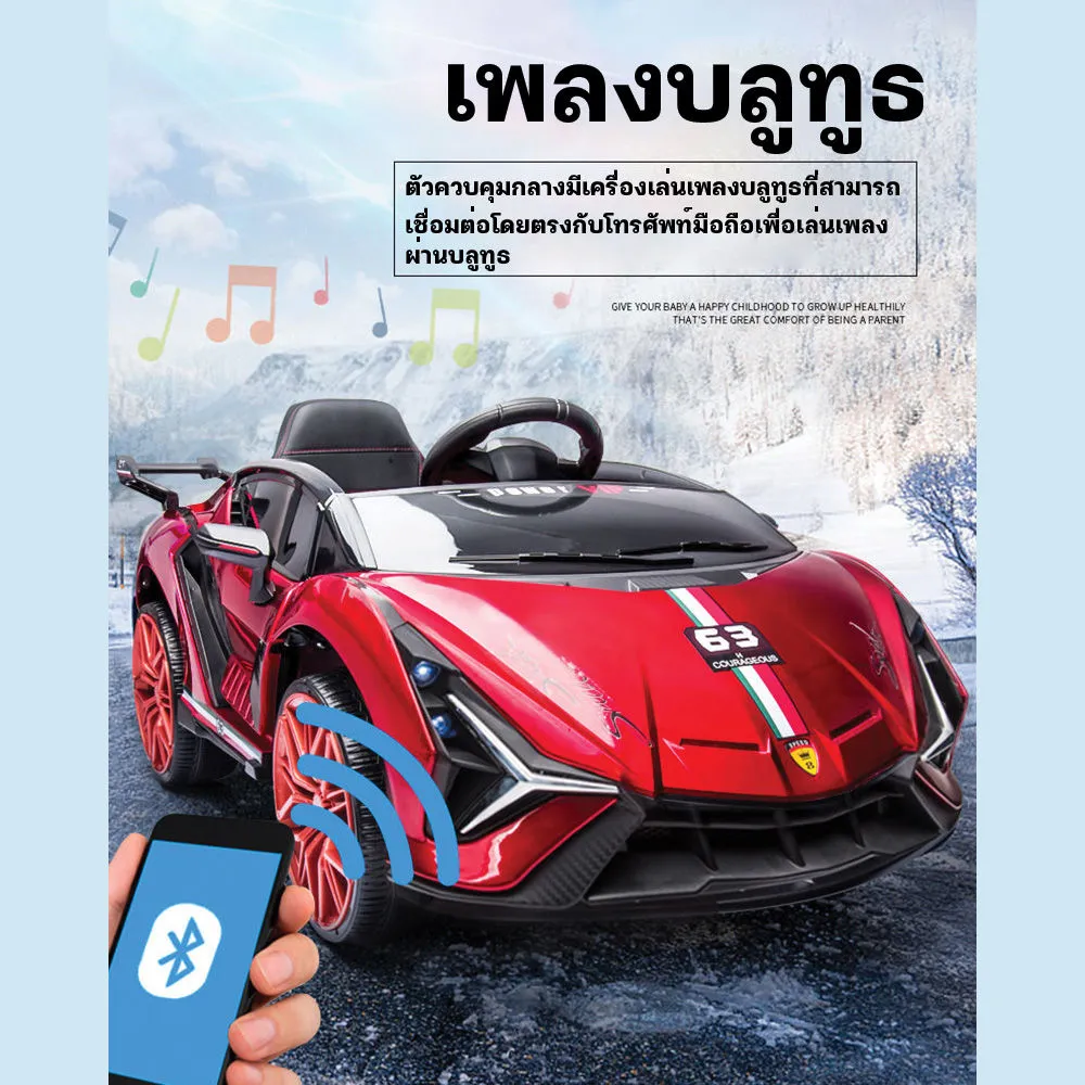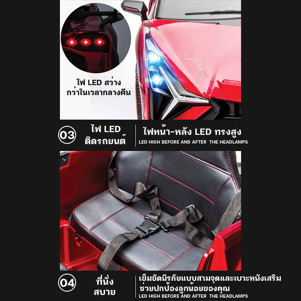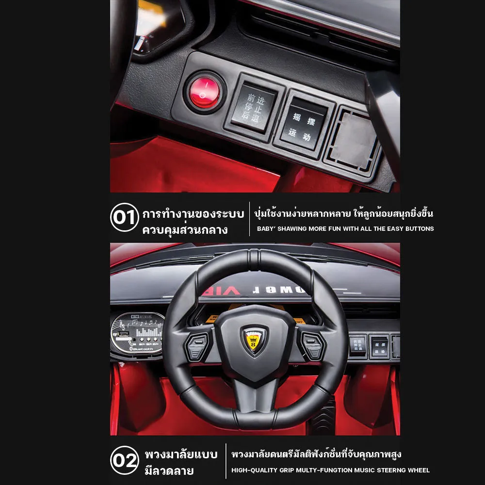 รถแบตเตอรี่เด็กนั่งทรงสปอร์ต Lambo Ferrari 2แบต2มอเตอร์ รถแบตคันใหญ่เปิดประตู รถแบตไฟฟ้าเด็ก มีเสียงมีไฟ เชื่อมบลูทูธได้ รองรับ Mobile App