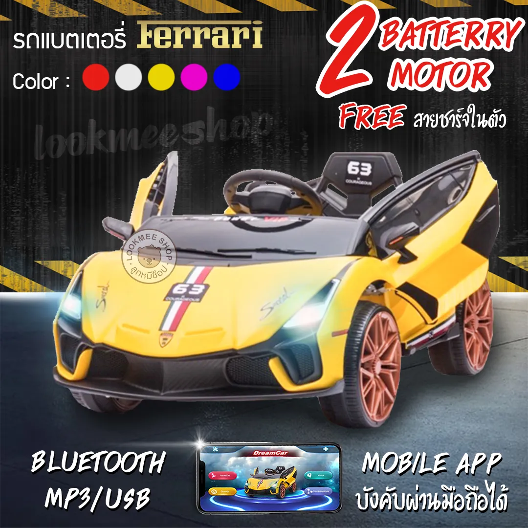 F1723 LookmeeShop รถแบตเตอรี่เด็กนั่งทรงสปอร์ต Lambo Ferrari 2แบต2มอเตอร์ รถแบตคันใหญ่เปิดประตู รถแบตไฟฟ้าเด็ก มีเสียงมีไฟ เชื่อมบลูทูธได้ รองรับ Mobile App