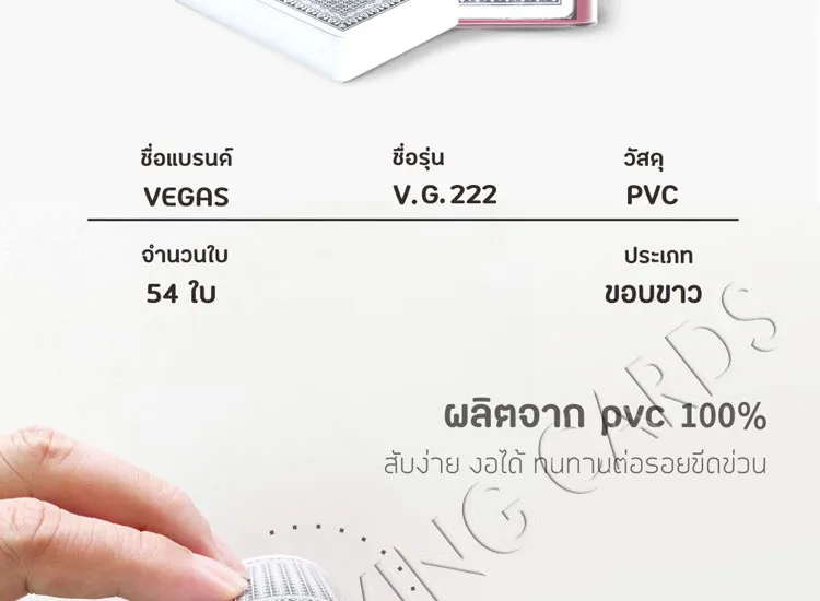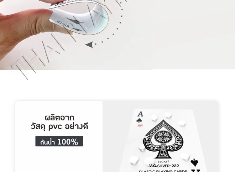 ไพ่ป๊อกพลาสติก ไพ่ขอบขาว V.G. 222 ตอง2 ตองสอง ไพ่แท้ ไพ่จริง ไพ่พลาสติก