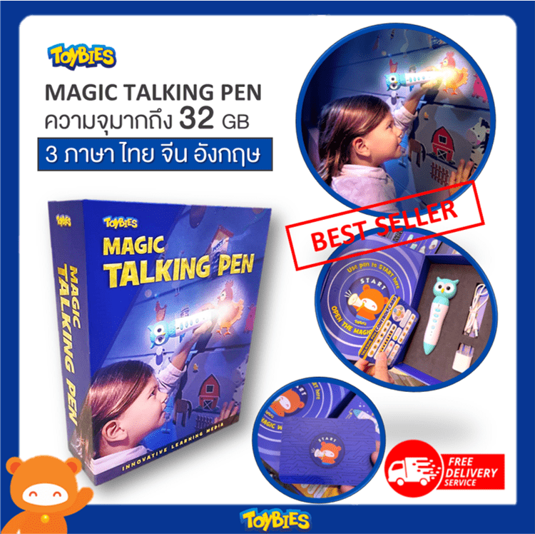 F1767 Toybies ปากกาพูดได้ 32 GB ปูพื้นฐาน 3 ภาษา ไทย จีน อังกฤษ ใช้ได้กับสติ๊กเกอร์-แฟลชการ์ด Toybies และหนังสือ MIS ทุกเล่ม (มากที่สุด)