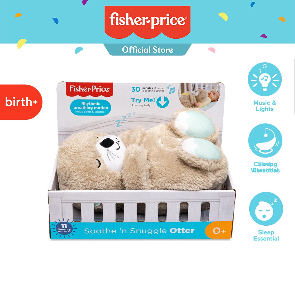 Fisher-Price® Soothe ‘n Snuggle Otter เป็นเครื่องกล่อมนอนที่มีเอกลักษณ์เฉพาะตัวที่ช่วยให้ลูกน้อยของคุณรู้สึกสบายเหมือนคุณแม่กล่อมนอน ท้องที่อ่อนนุ่มจะขยับขึ้นและลงเป็นจังหวะซึ่งเลียนแบบการหายใจเพื่อช่วยปลอบลูกน้อยของคุณอย่างเป็นธรรมชาติ พร้อมด้วยดนตรี เอฟเฟกต์เสียง และแสงไฟอันนุ่มนวลนานถึง 30 นาที ด้วยตุ๊กตาที่มีความน่ารัก ผ้าที่แนบสนิท และหางที่นุ่มนิ่ม Soothe ‘n Snuggle Otter จึงเป็นเพื่อนที่สมบูรณ์แบบสำหรับลูกน้อยของคุณ