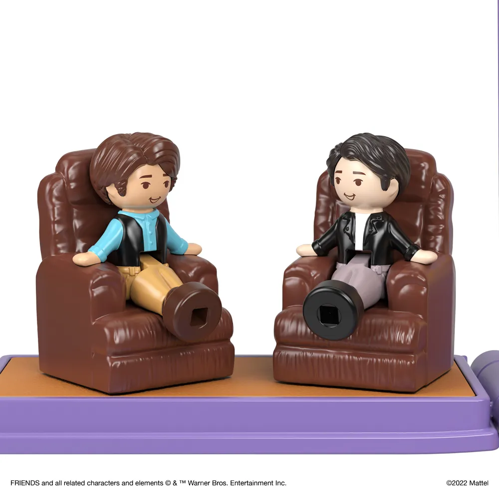 • ประกอบด้วยรูปทรงกะทัดรัดเช่นแก้วกาแฟ Central Perk ตุ๊กตาจิ๋ว 6 ตัว เครื่องประดับ 9 ชิ้น และสถานที่อันเป็นเอกลักษณ์ 3 แห่ง